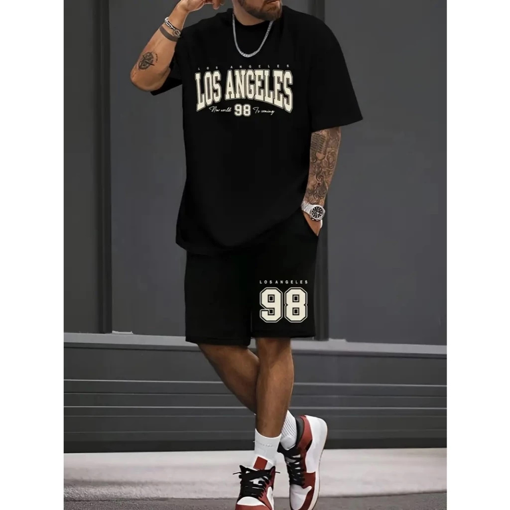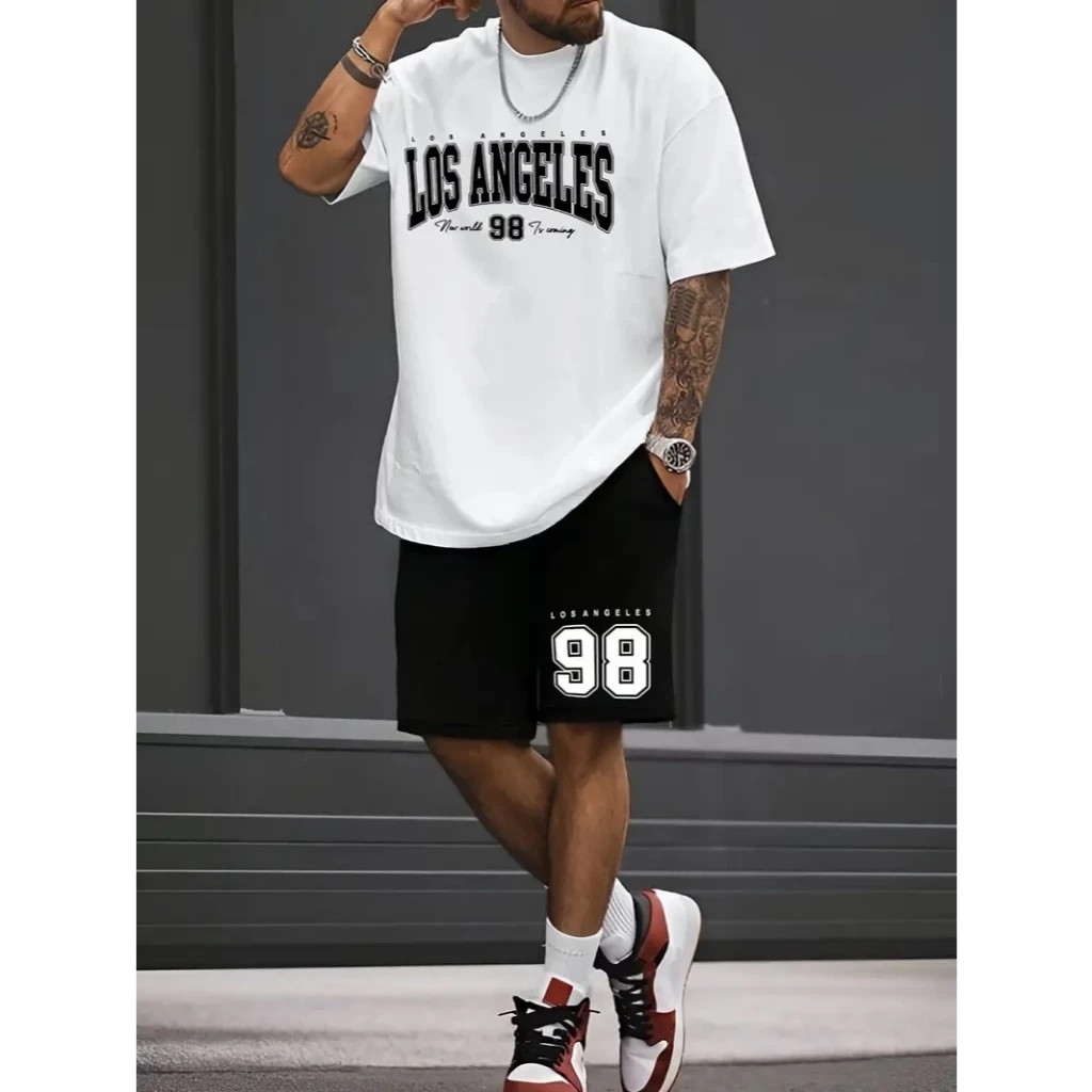 Conjunto Camiseta E Bermuda Los Angeles 98 Estampa Casual Masculino Kit Camisa e Short Moletom