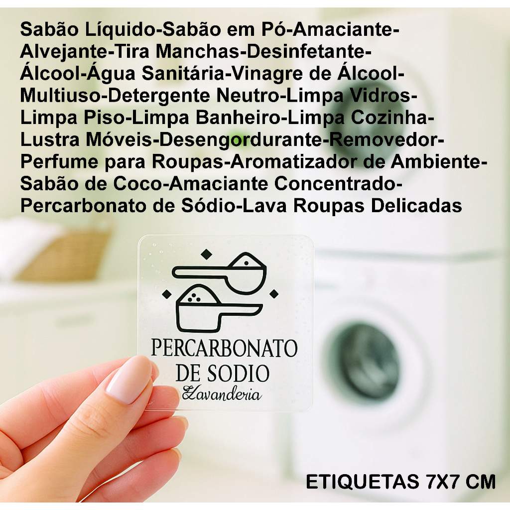 Kit 24 Etiquetas Transparentes Lavanderia - Adesivo Organizador de Produtos de Limpeza Moderna 7x7cm