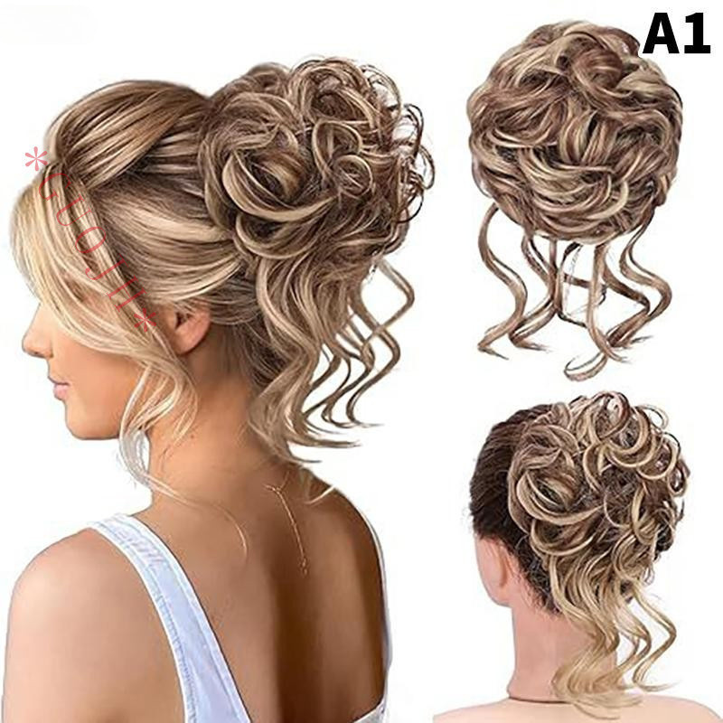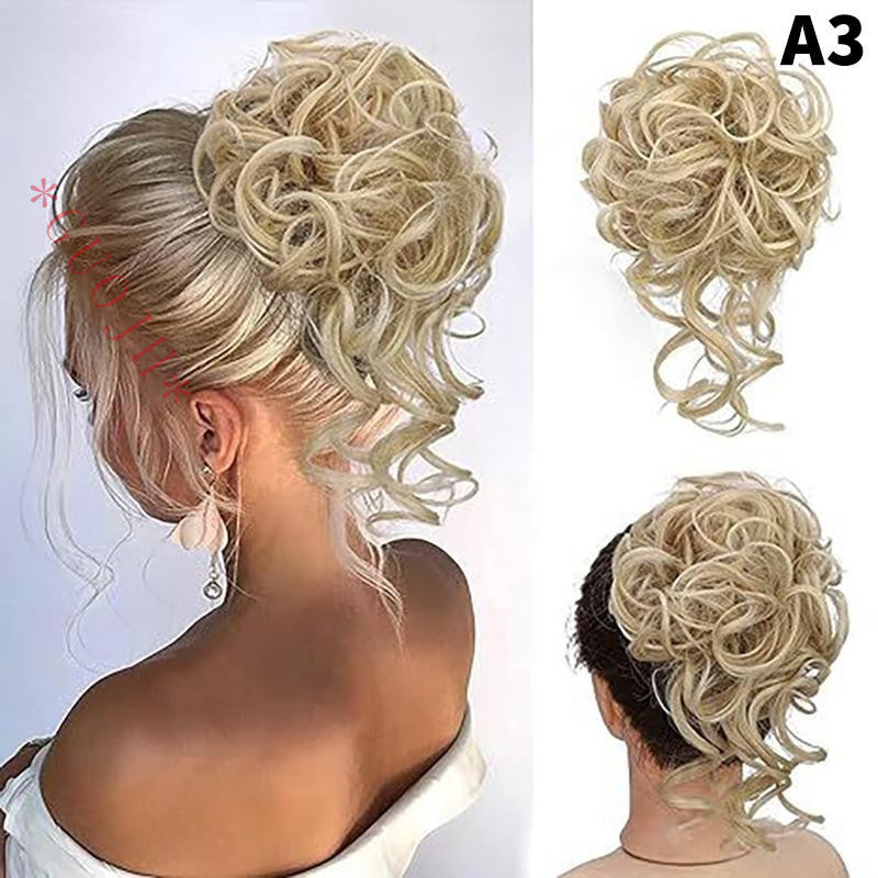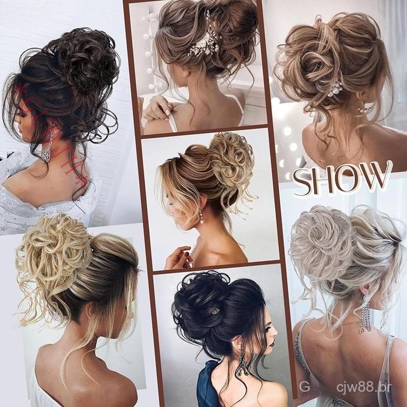Sintético Encaracolado Cabelo Garra De Coque Fofo Peruca Clip In Extensão Scrunchy Rabo De Cavalo Alto Natural P