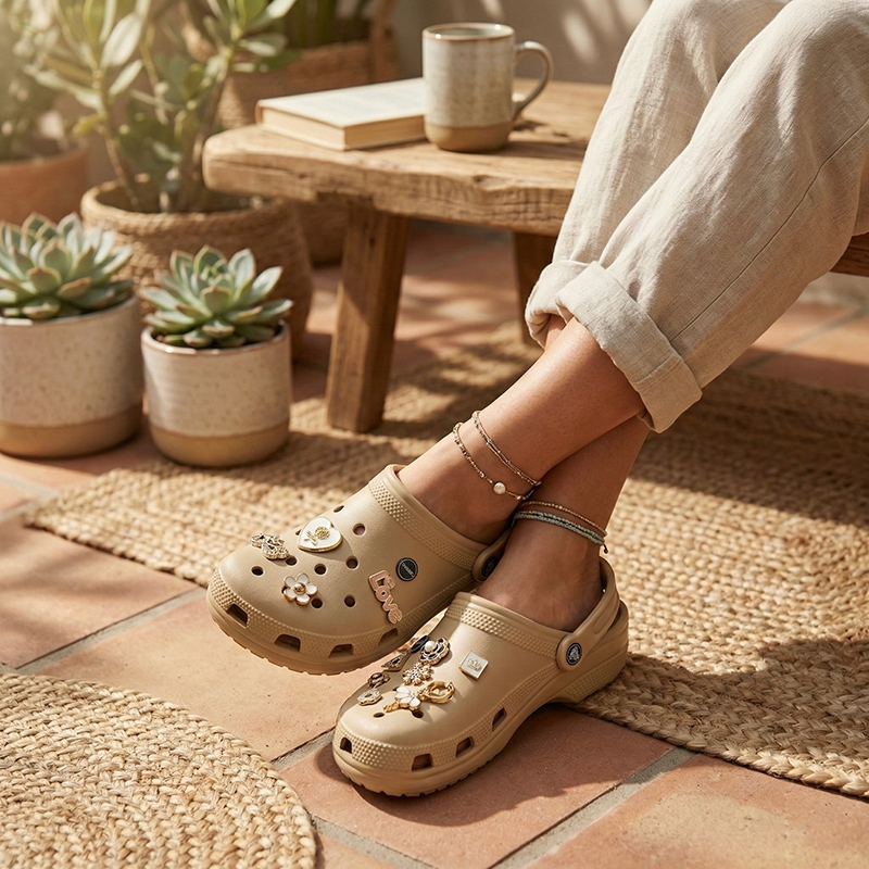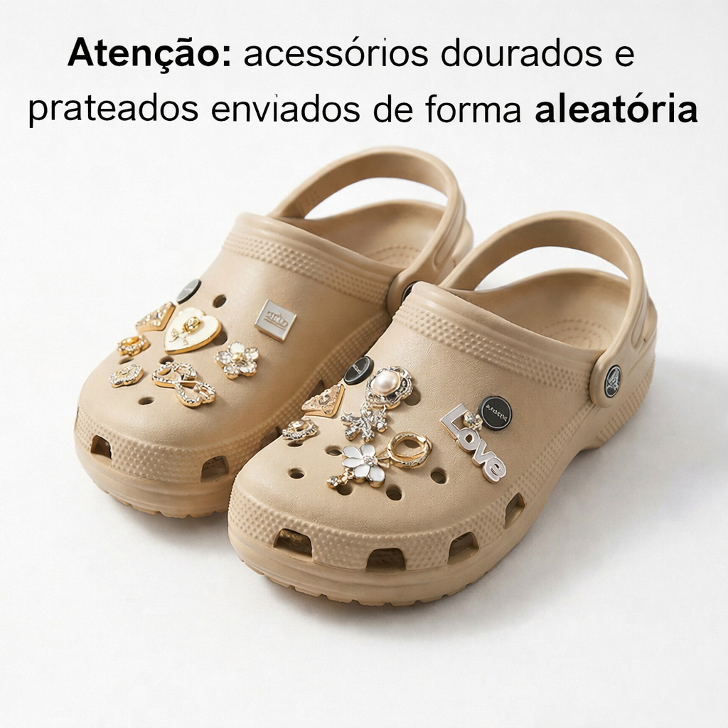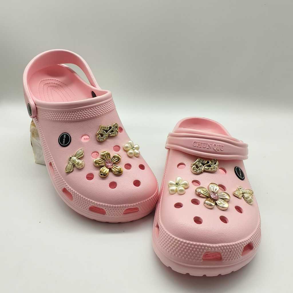 BABUCHE PLATAFORMA ALTA NUVEM MACIA 100 % DECORADA COM BÓTONS PINGENTES EM ABS CONFORTÁVEL