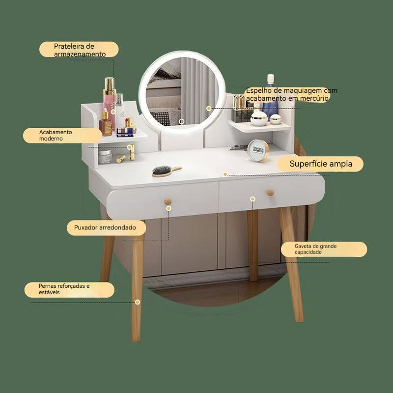 Penteadeira de quarto moderna e simples, nova penteadeira de luxo leve, penteadeira de canto pequena em estilo japonês