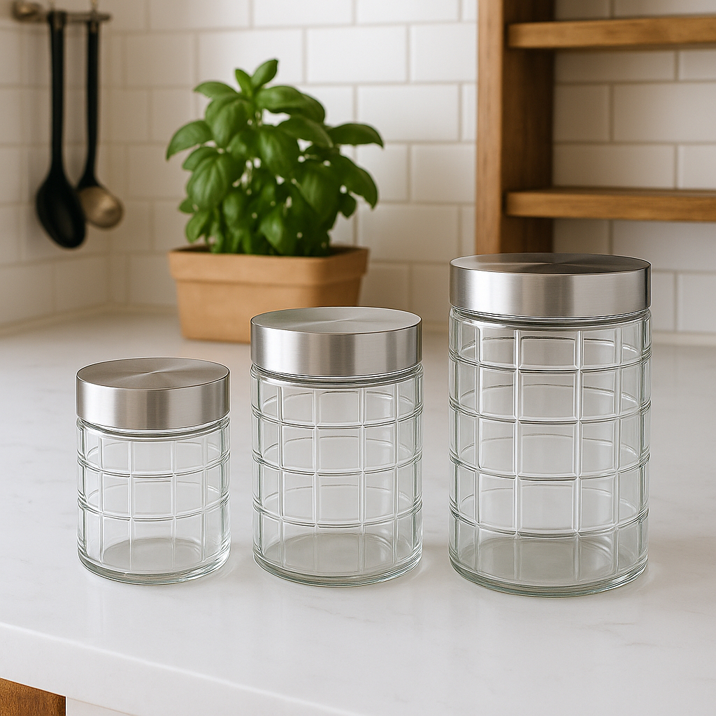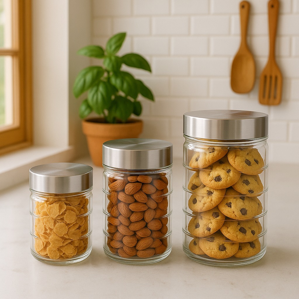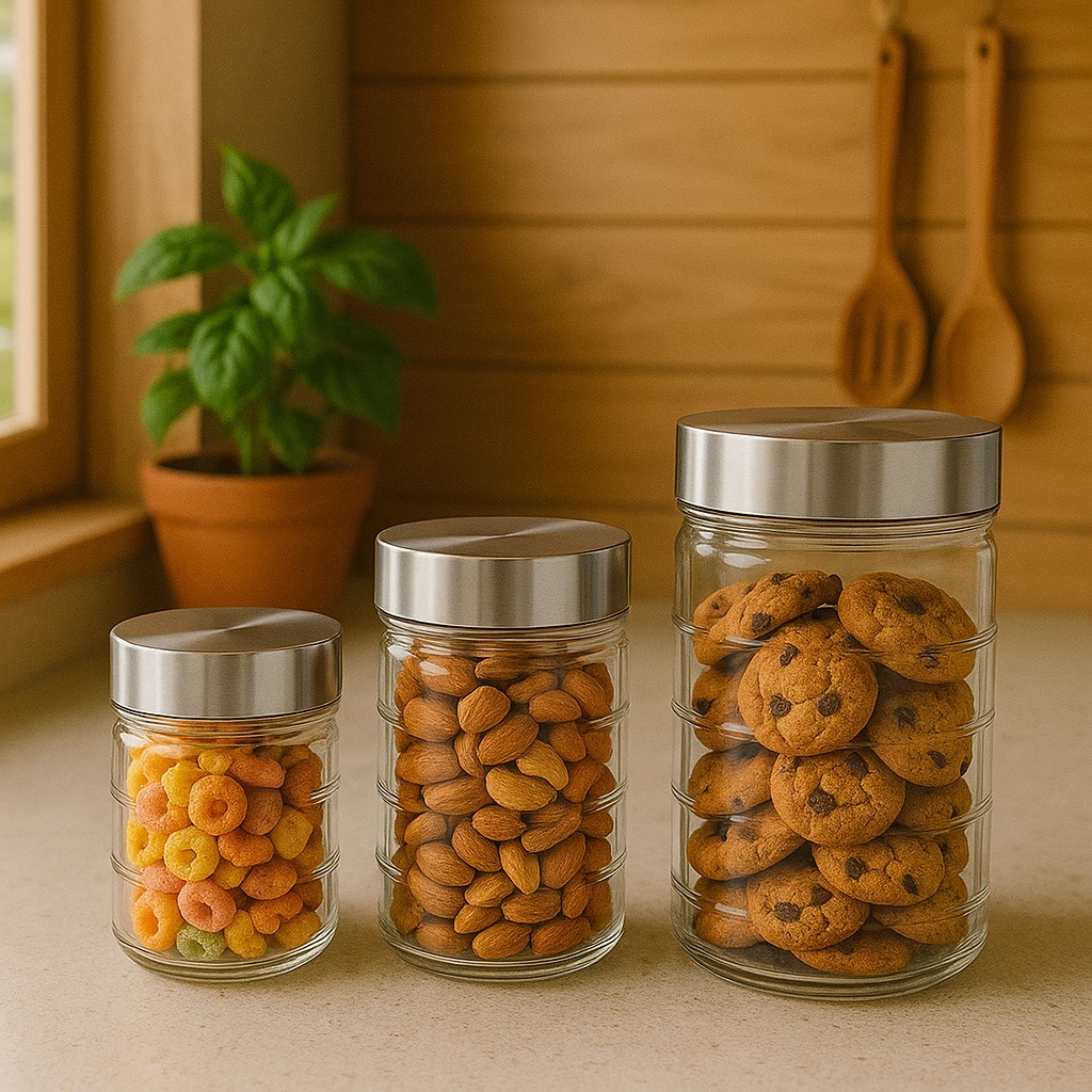 Kit 3 Potes de Vidro com Tampa de Inox – Vedação Hermética | Ideal para Mantimentos, Café e Biscoito