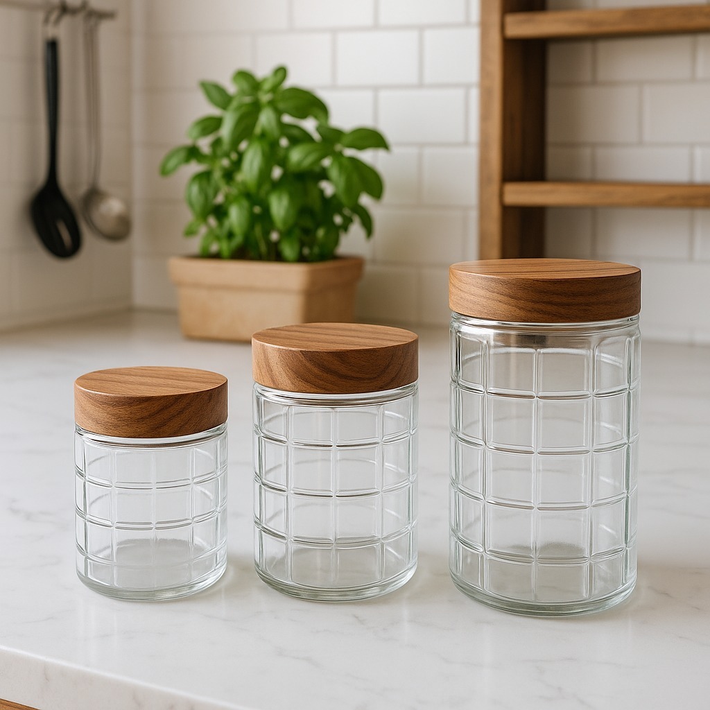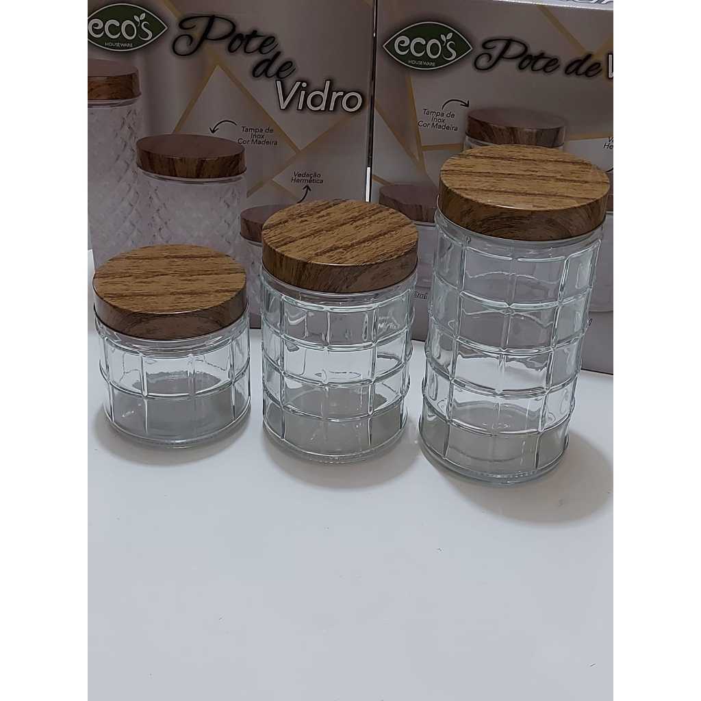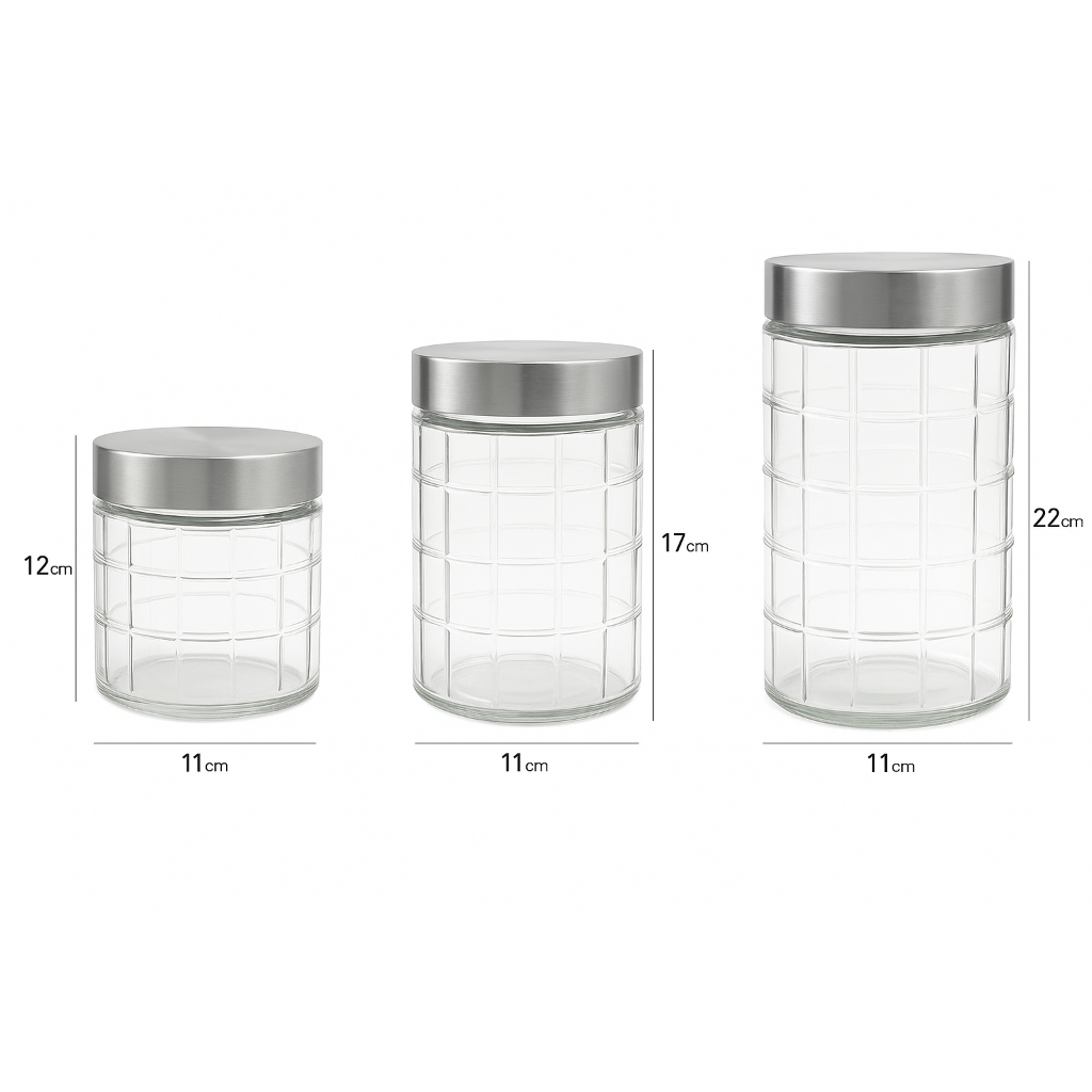 Kit 3 Potes de Vidro com Tampa de Inox – Vedação Hermética | Ideal para Mantimentos, Café e Biscoito