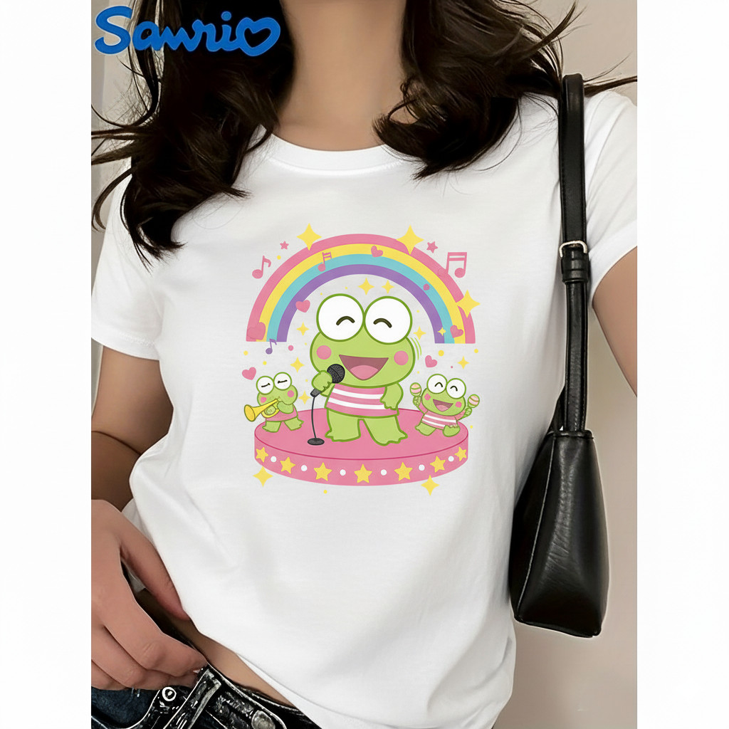 Camiseta Feminina Sanrio Keroppi Rã Musical Unissex Shirt Oversized 100% Algodão