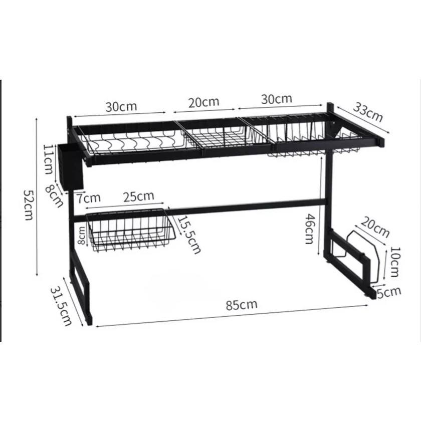 Escorredor Organizador de Louças Preto Aço Inoxidável Organizador Louça 65/85cm Com 4 presentes