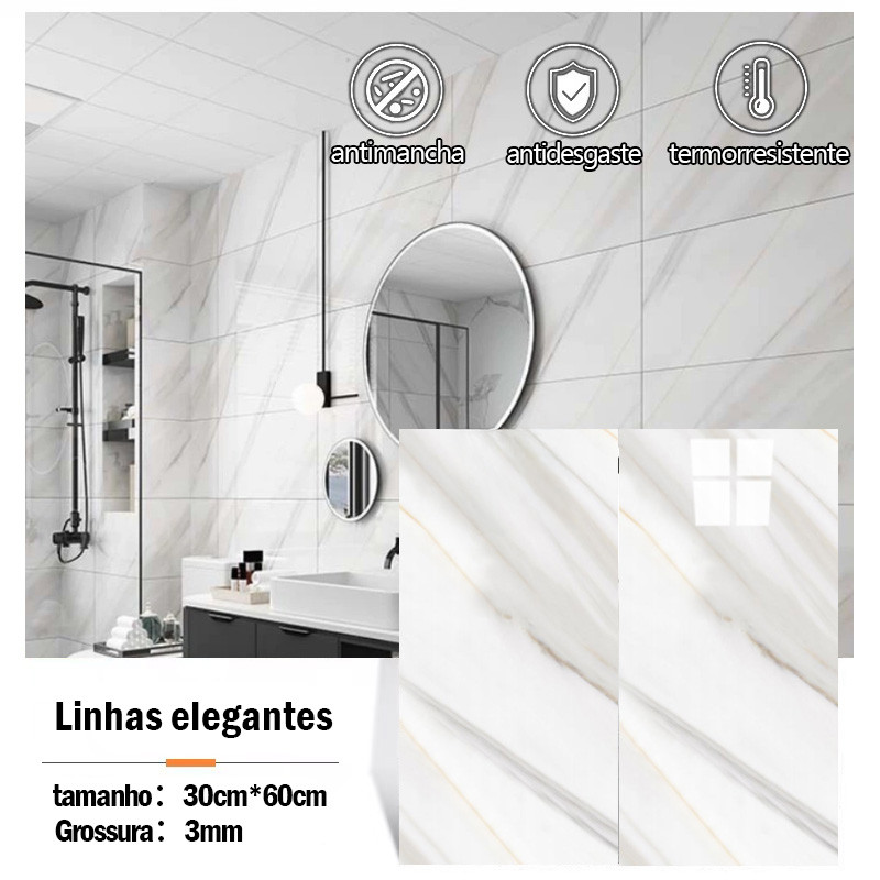 10/15/20PCS Placas Adesivas Mármore Parede Autocolante 3D Porcelanato 30 cm x 60 cm Cobrindo 1.8/2.7/3.6m²