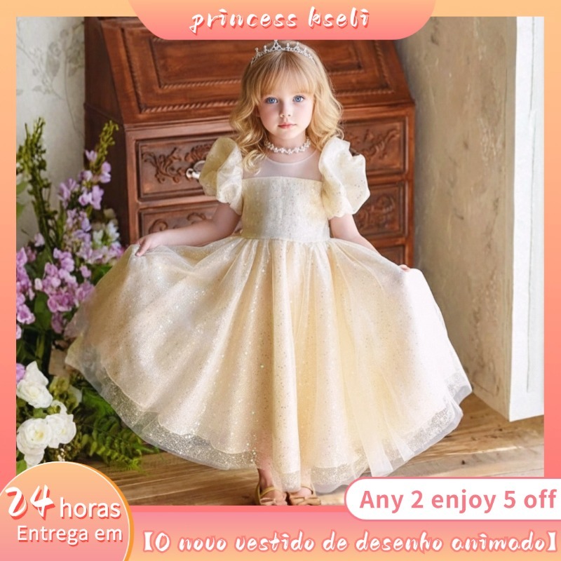 PRINCESSKESLI Vestido infantil de lantejoulas,Adequado para todos os tipos de festas,Elegante e generoso,ano novo dress
