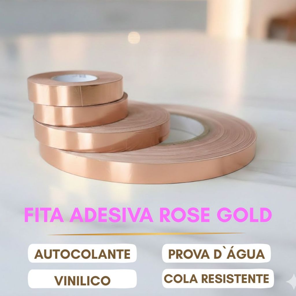 Fita Adesiva Reforçada Efeito Metalizado Dourada Rose Prata Largura 1CM Ideal P/ Casa Decoração