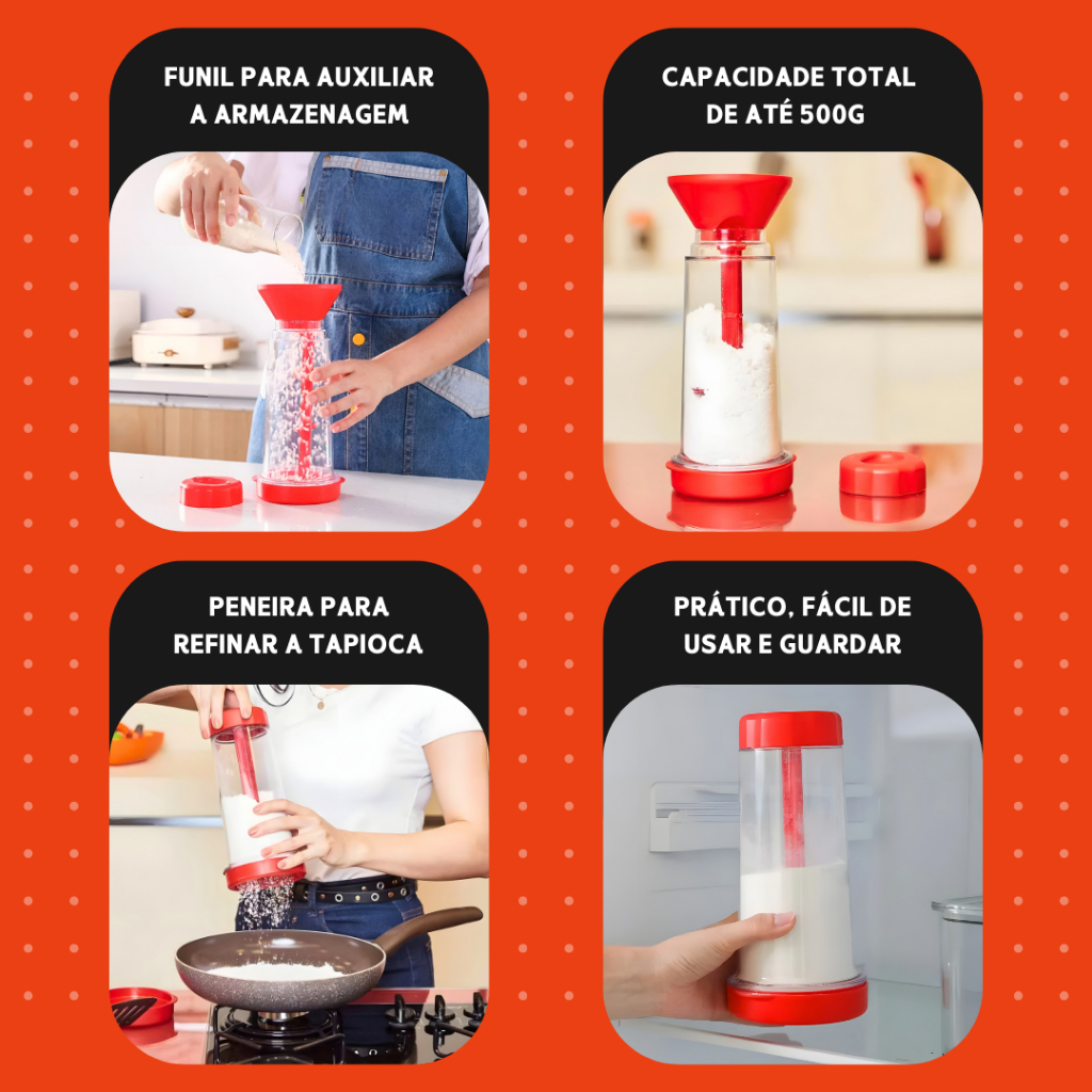 Tapioqueira 2 em 1 | Peneira + Armazenador de Tapioca | Praticidade Sem Sujeira na Cozinha - BARUCH