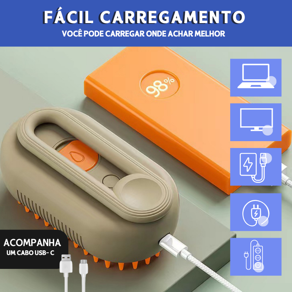 Escova Pet Vapor Elétrica 3 em 1 Remove Pelos Cachorro Gato Limpeza Massagem Recarregável