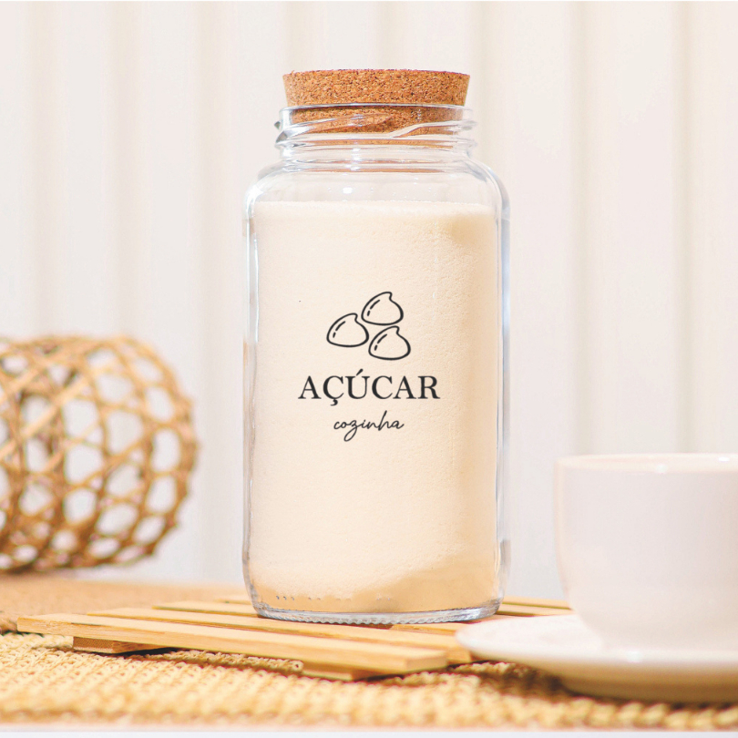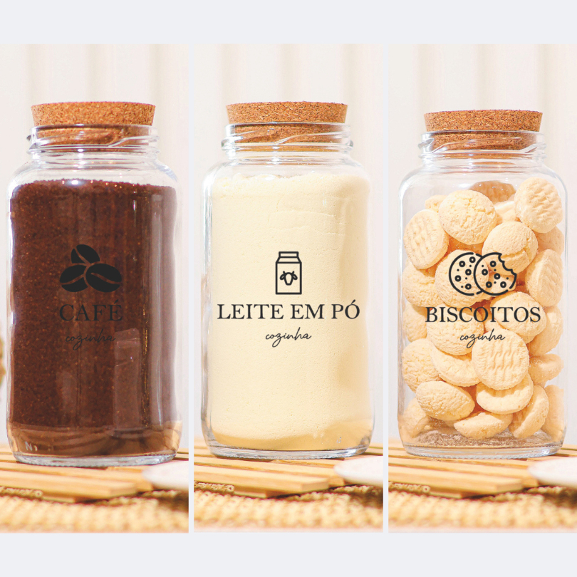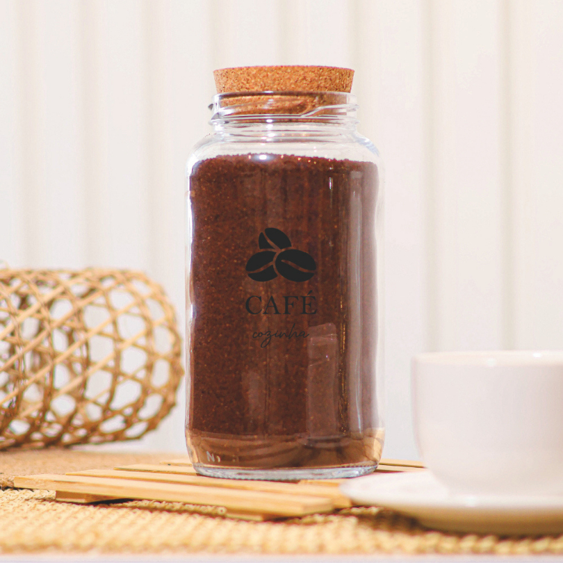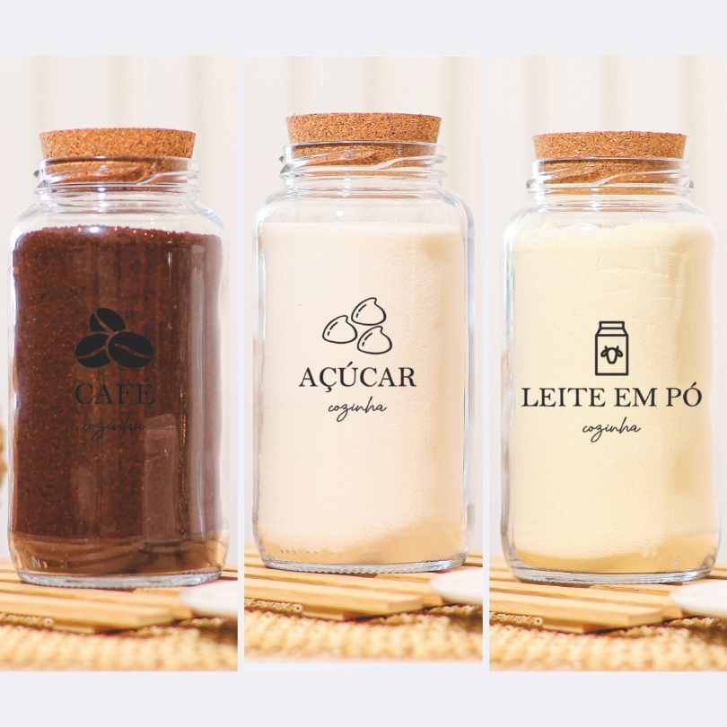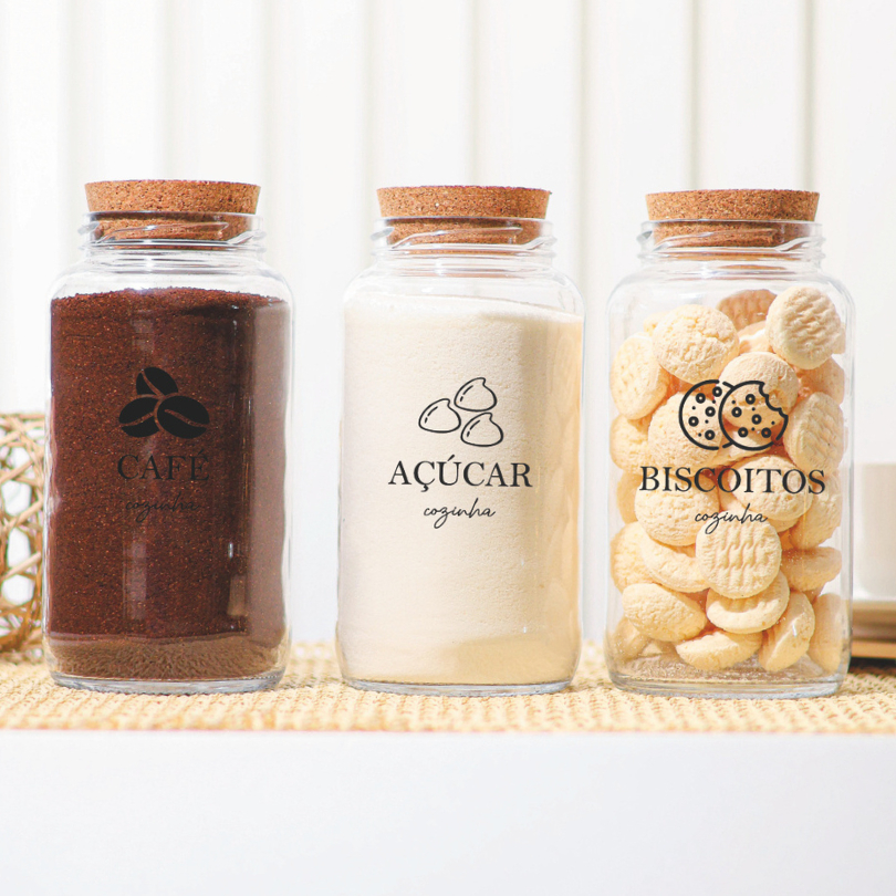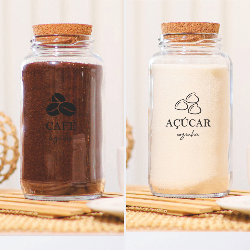 Cantinho do Café 810ml com ICON | ESCOLHA SEU KIT | Potes de Vidro | Cortiça com ou sem Adesivos | Armazenamento