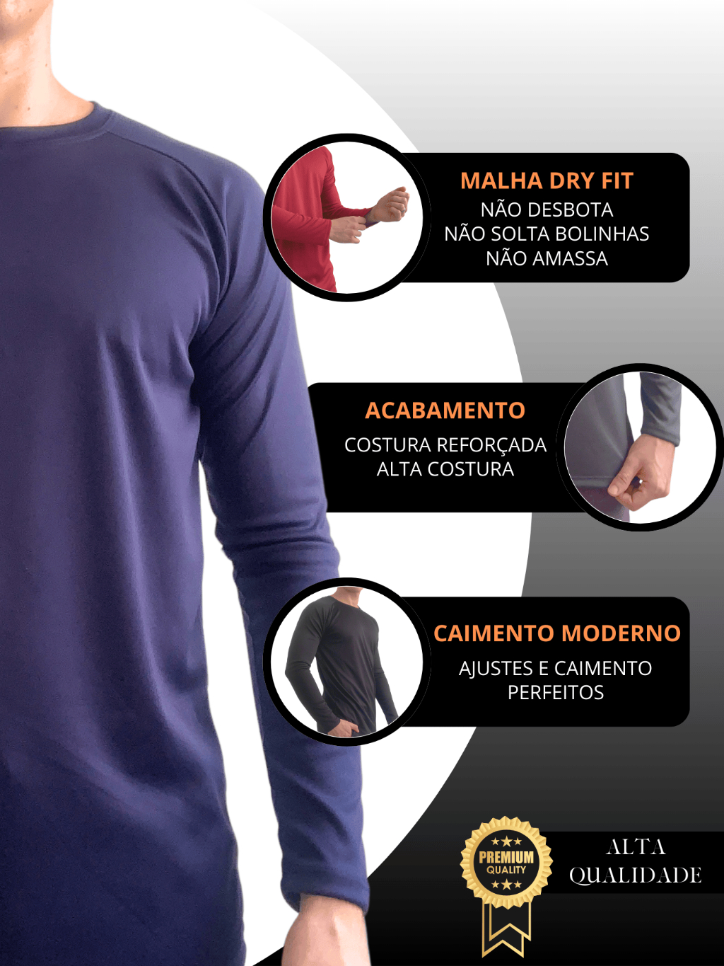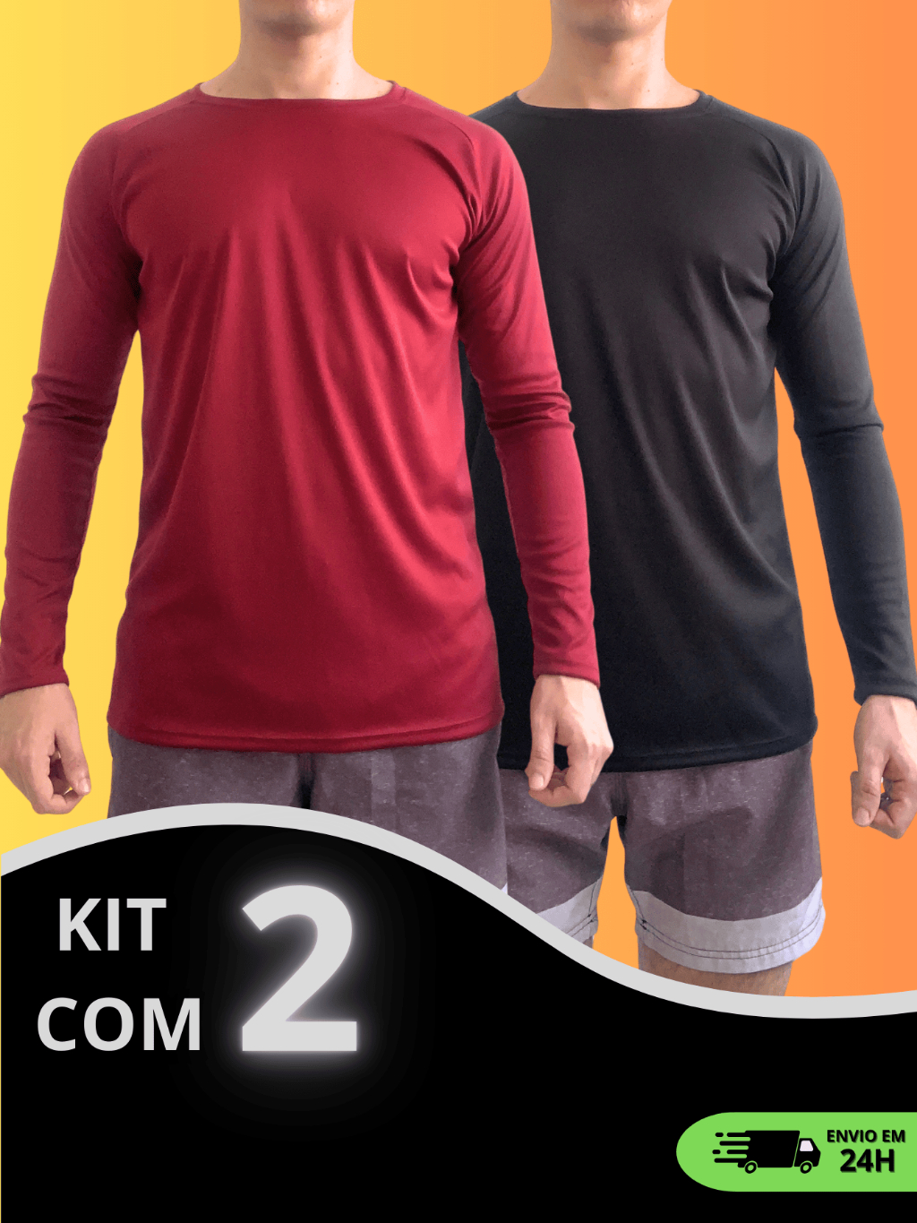 Kit 2 Camiseta Manga Longa Dry Fit Masculina Térmica Academia Segunda Pele Treino Proteção Solar