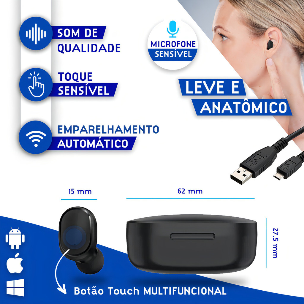 Fone De Ouvido Bluetooth 5.0 Par Sem Fio Duplo Premium Cor P
