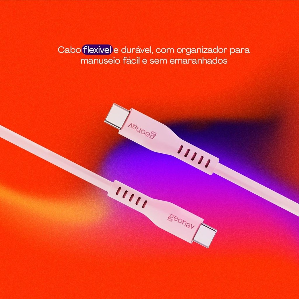 Cabo Silicone Usb-C Para Usb-C 2.0 1,5M Esc06Spk Rosa Geonav