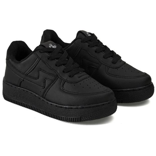 Tênis Clássico Infantil Preto Couro Antiderrapante 18 ao 33 Confortável Macio e Leve Menino Menina Queima de Estoque