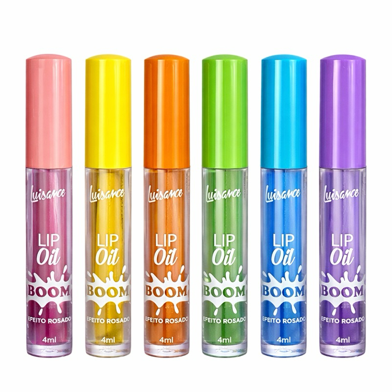 Lip Oil Boom Luisance - Gloss Labial Hidratante Colorido Carnaval Brilho Intenso - Gloss Efeito Rosado