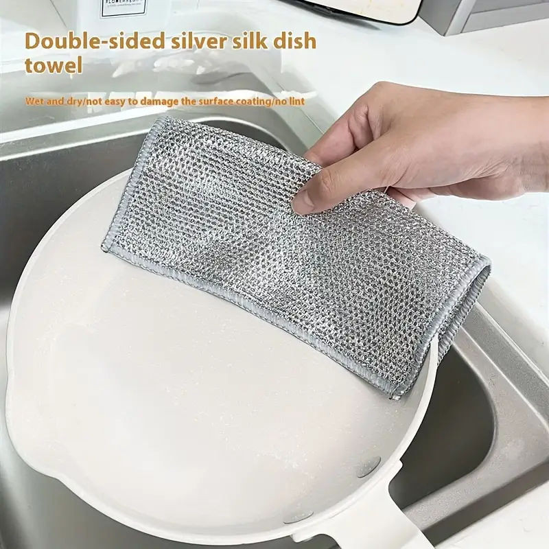 Pano De Lavar Louça Fio De Aço Inoxidável Prateado Para Panelas E Fogões À Prova De Ferrugem