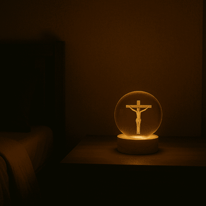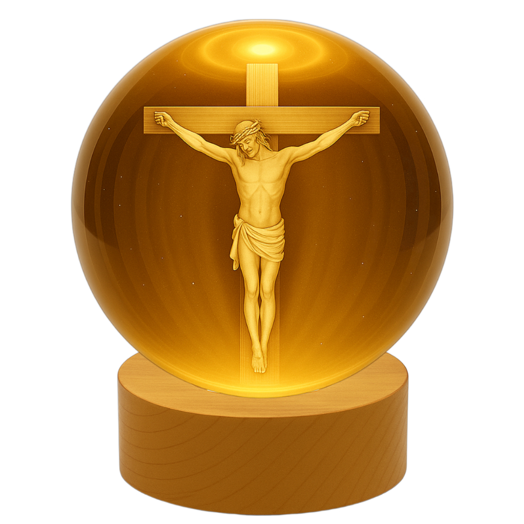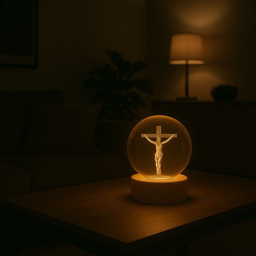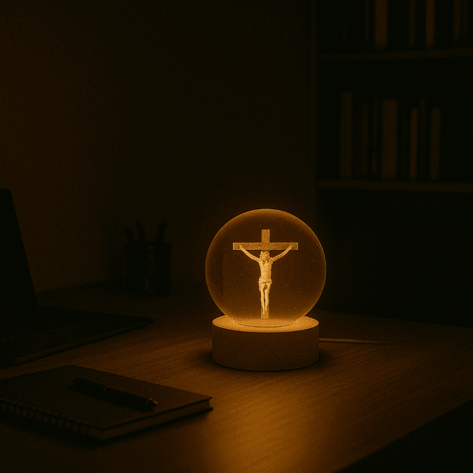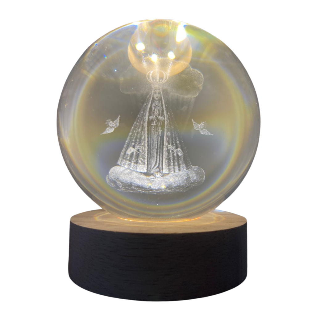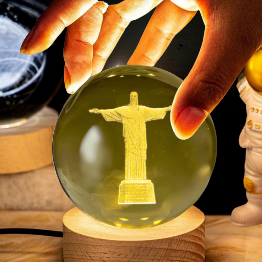 Luminária de Mesa Bola de Cristal Abajur para Sala Vintage Base Madeira Jesus Cristo 3D USB Bíblia