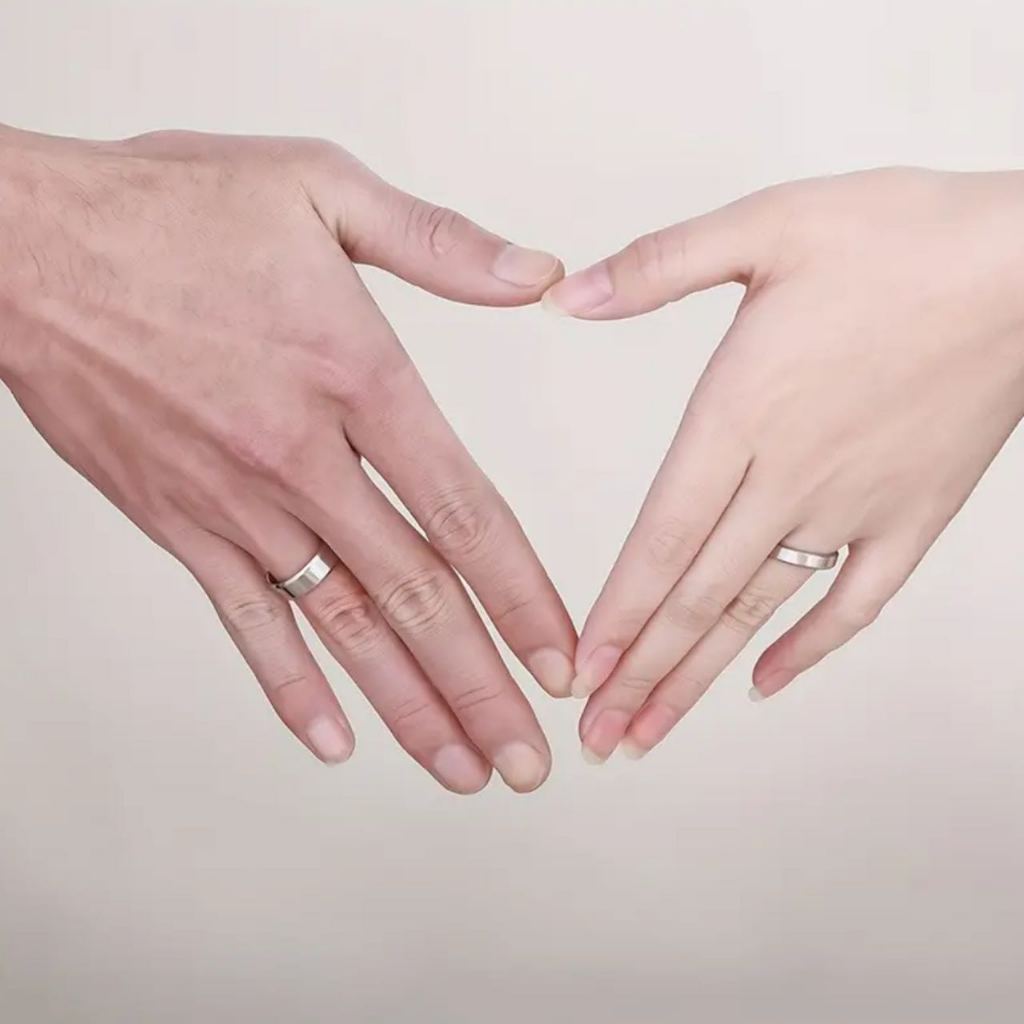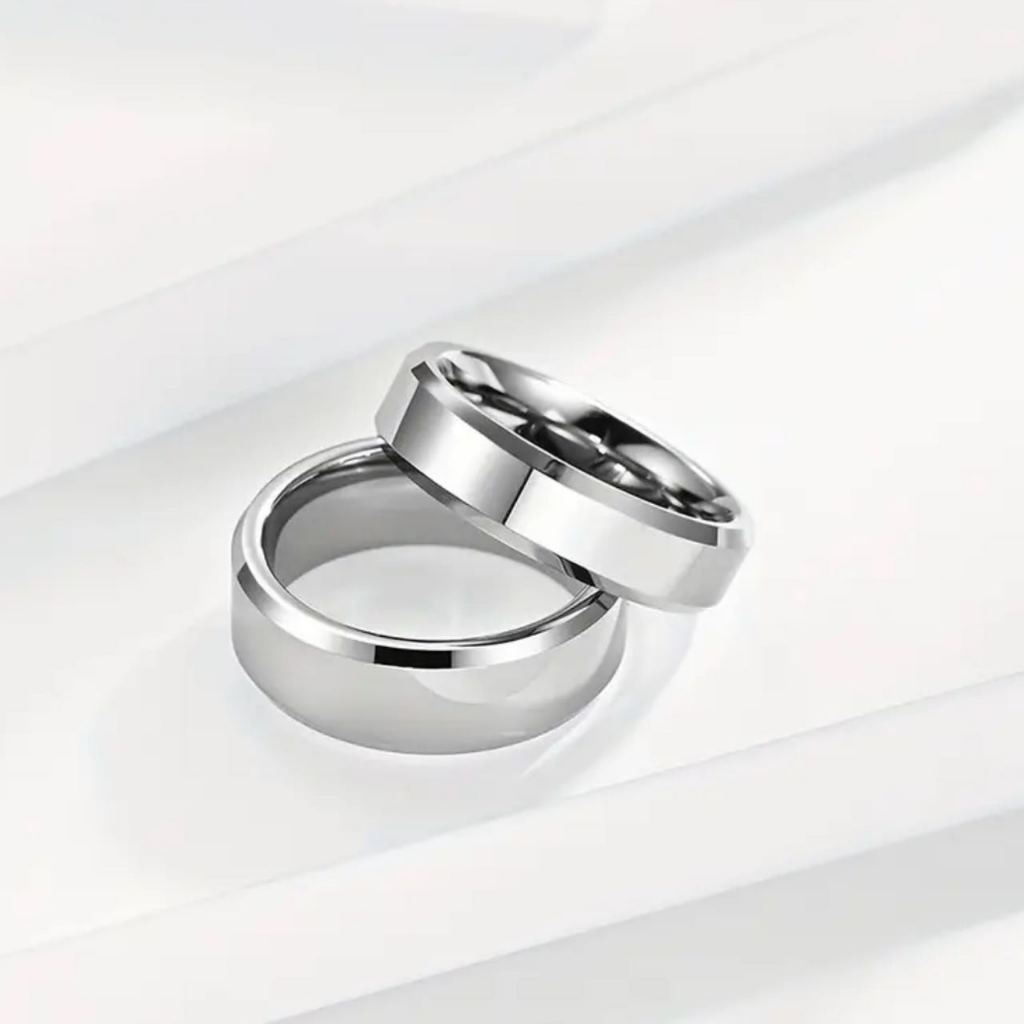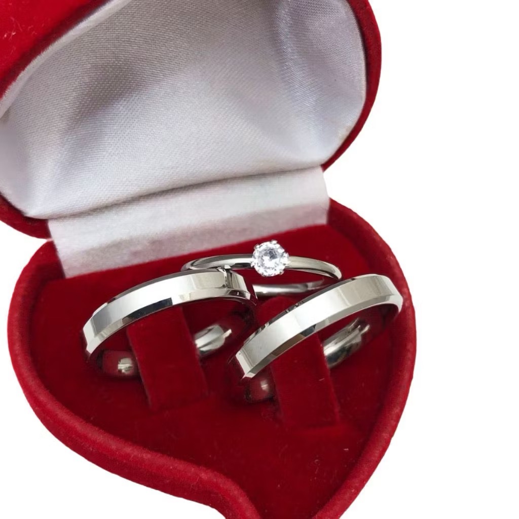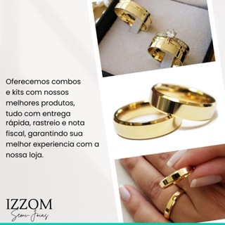 1 Par de Aliança E anel solitário Namoro Aliança Prata 4mm Tradicional Quadrada Compromisso Namoro Casal Prateada