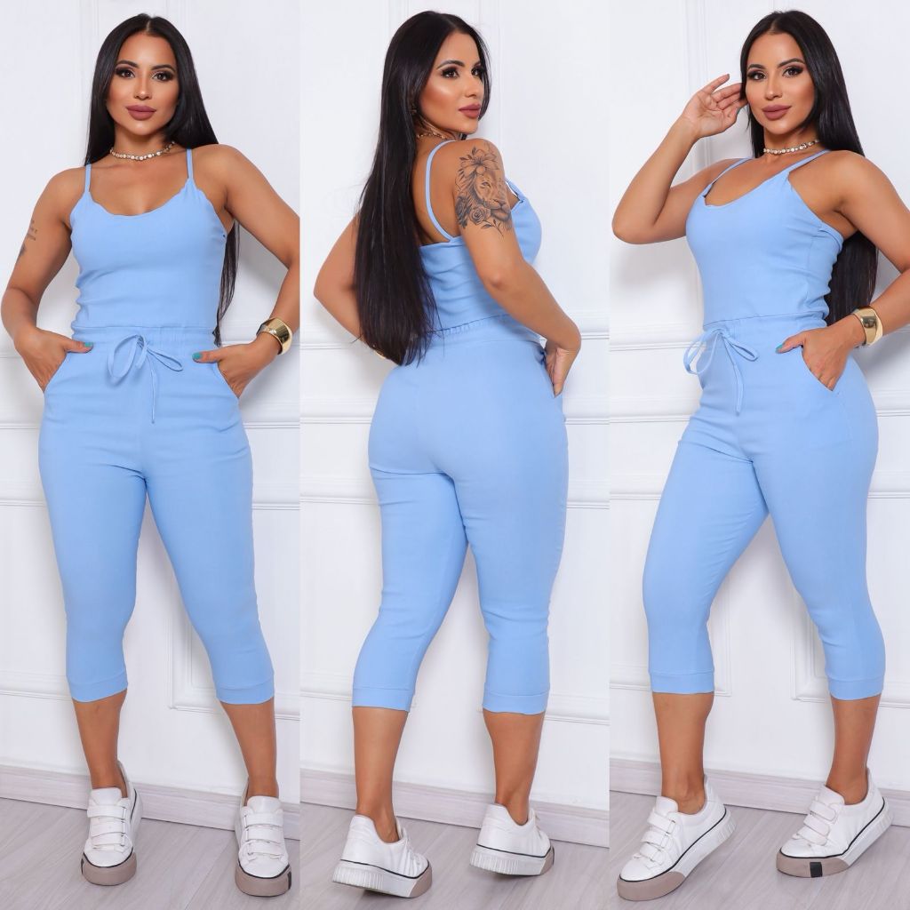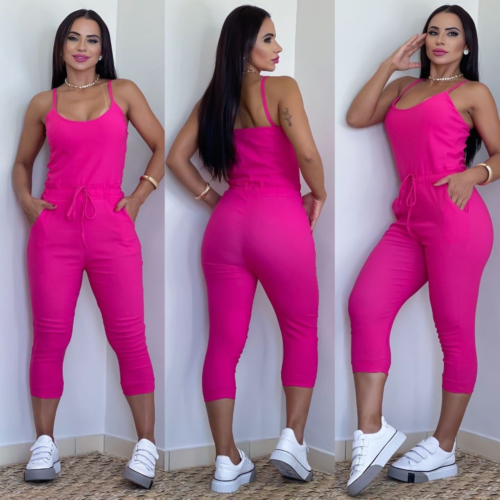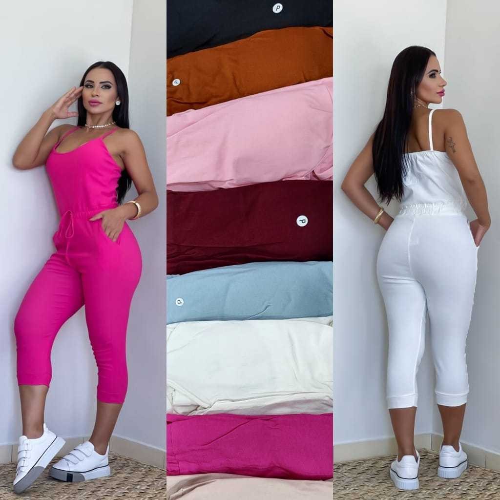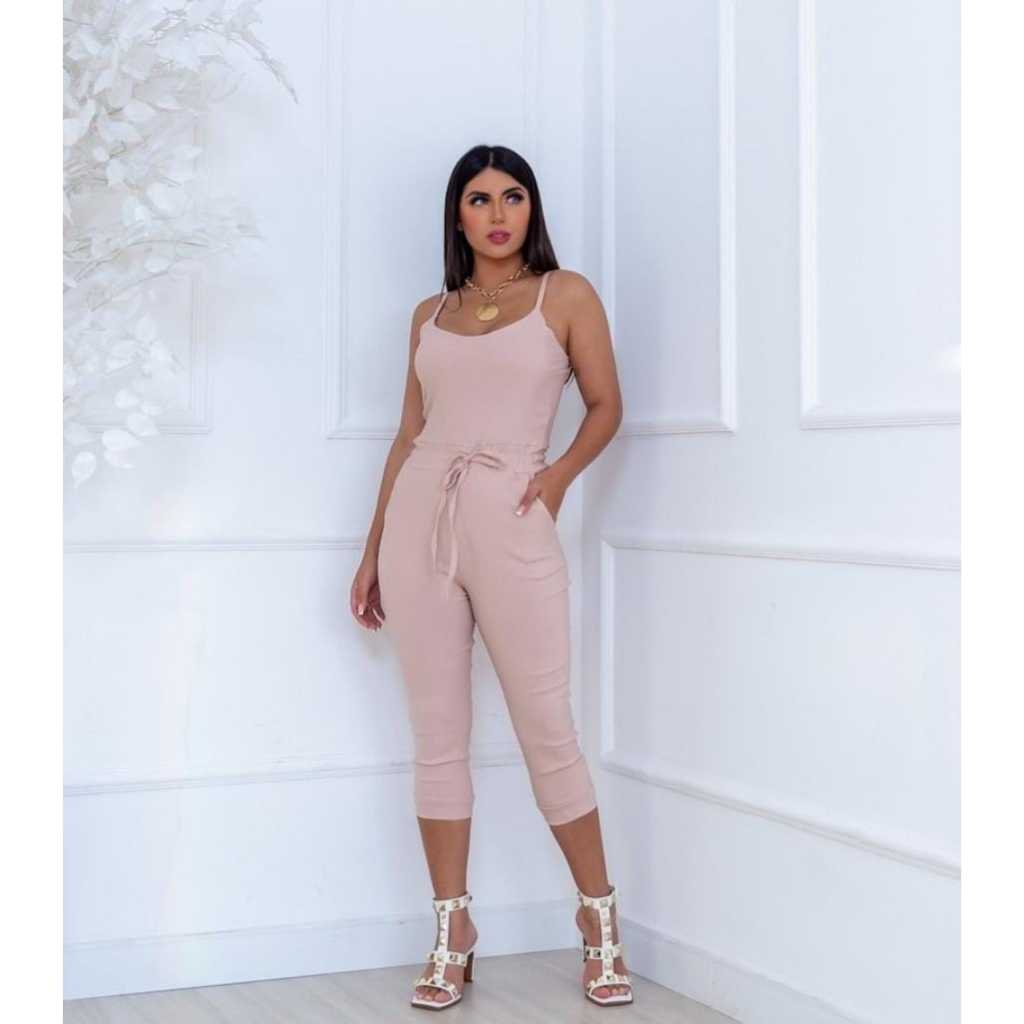 Macacão Jogger de Alça Feminino Em Bengaline Com Bojo