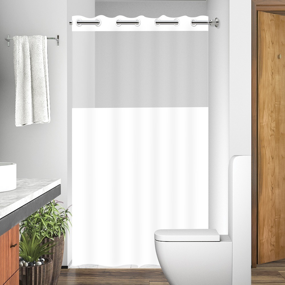 Cortina Box com Visor Transparente P/ Banheiro Ilhós PVC Anti Mofo Resistente Lisa / Estampada