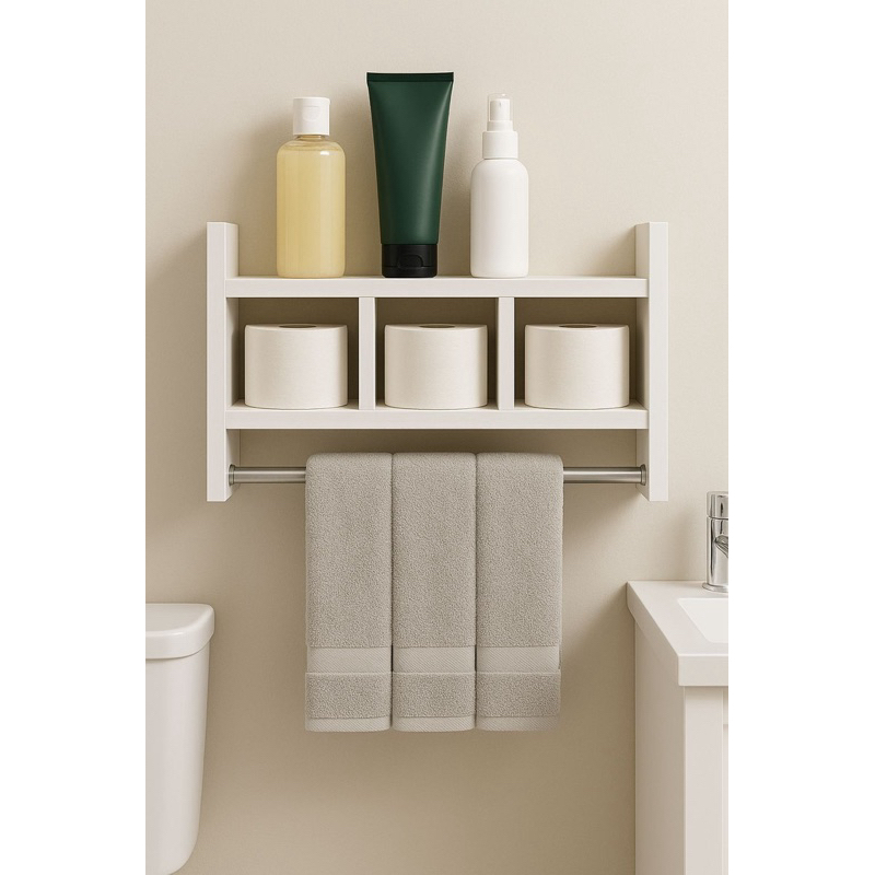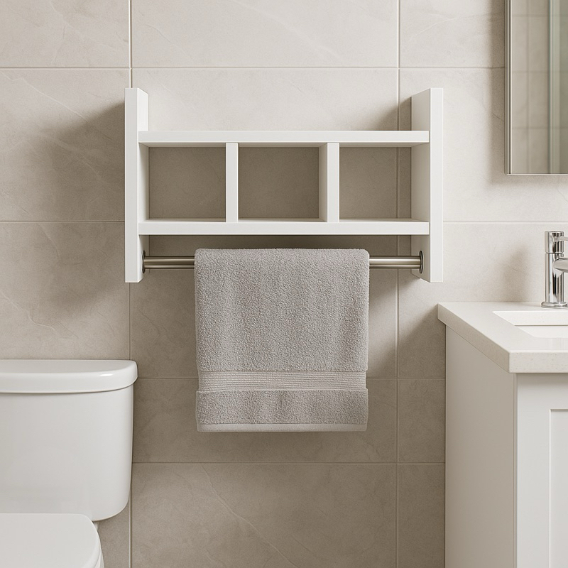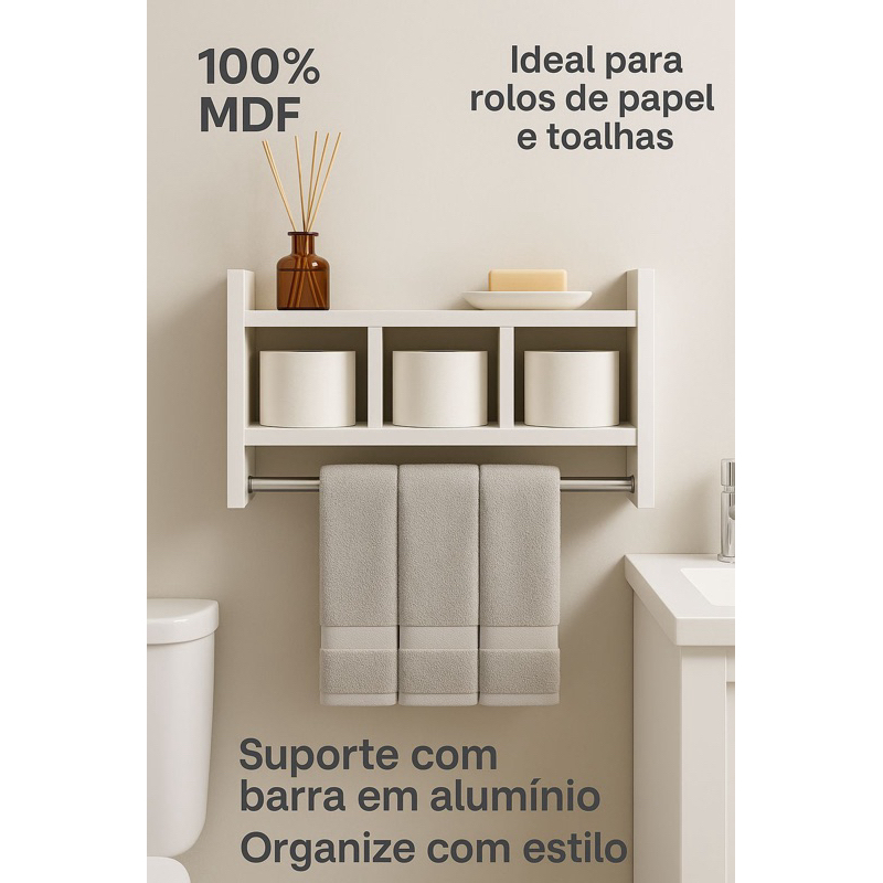 Nicho suporte de Toalha com Prateleira Organizador de Parede em MDF com Alumínio Oval para Banheiro