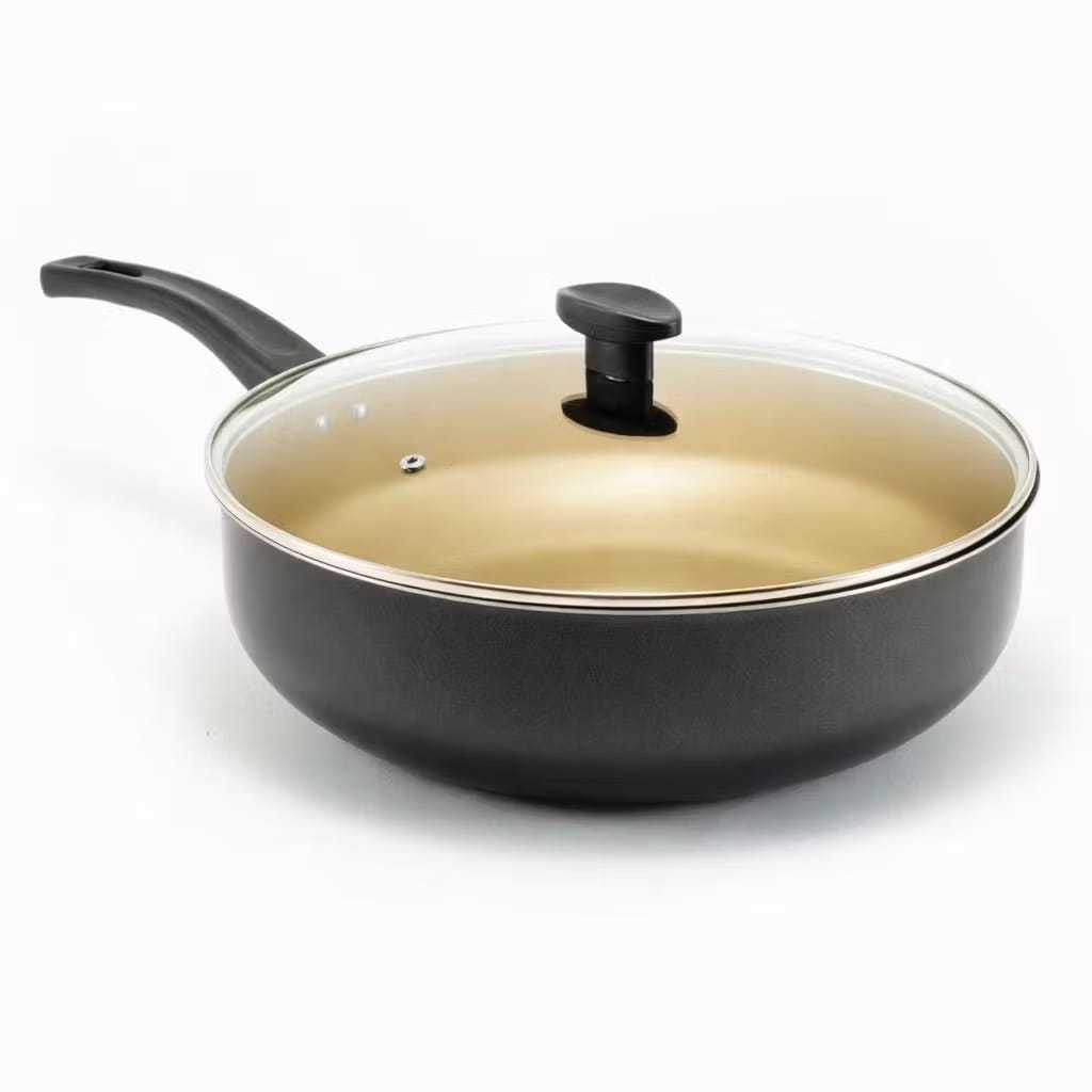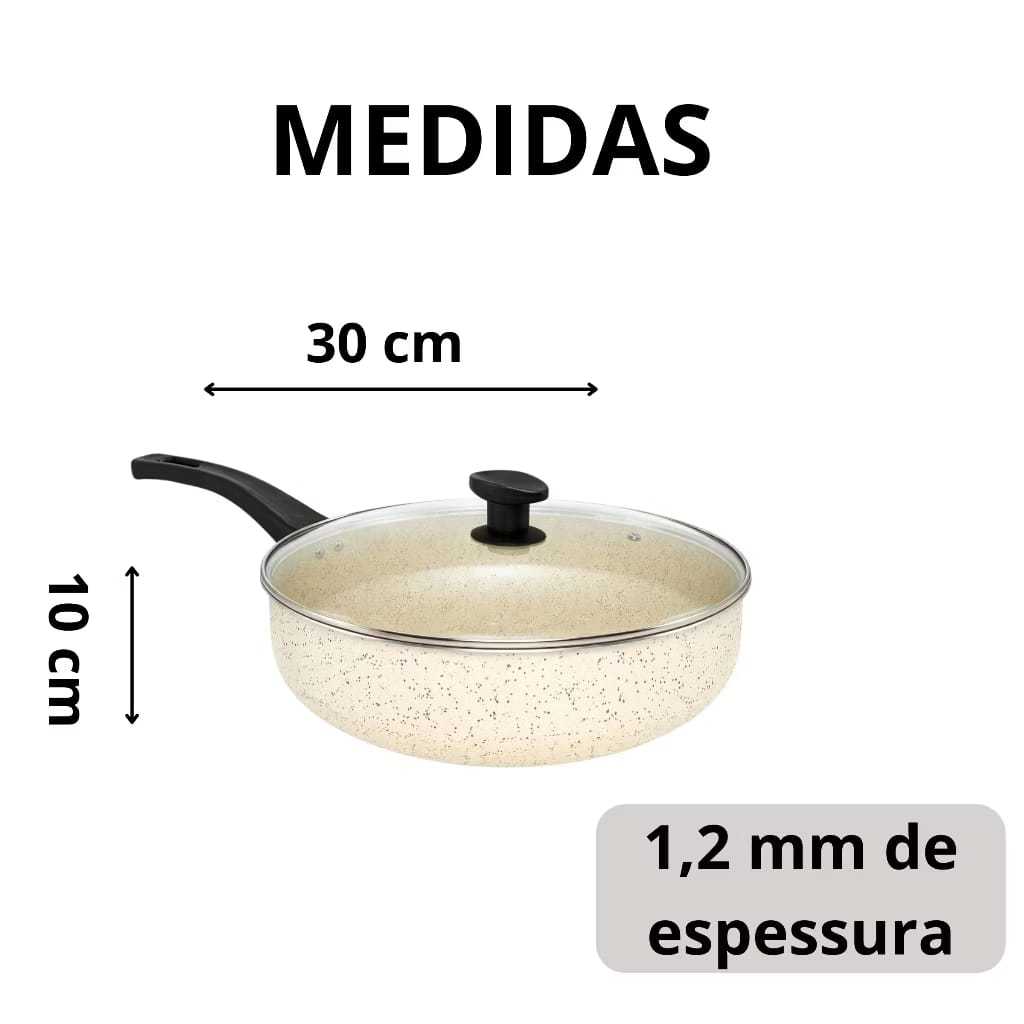 Frigideira Grande Funda Alta Wok Antiaderente 30 Cm Com Tampa De Vidro