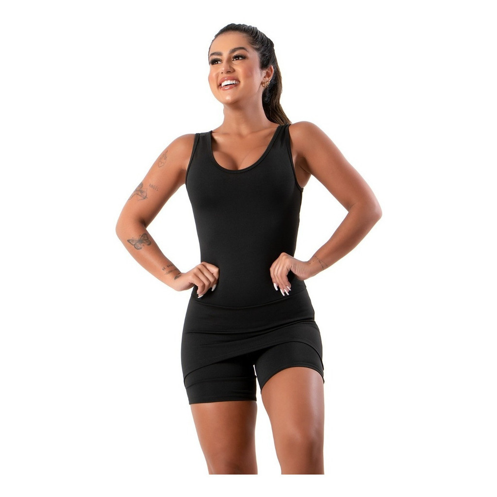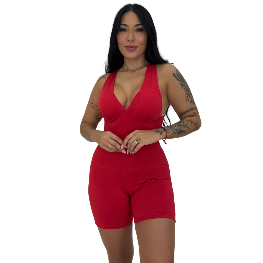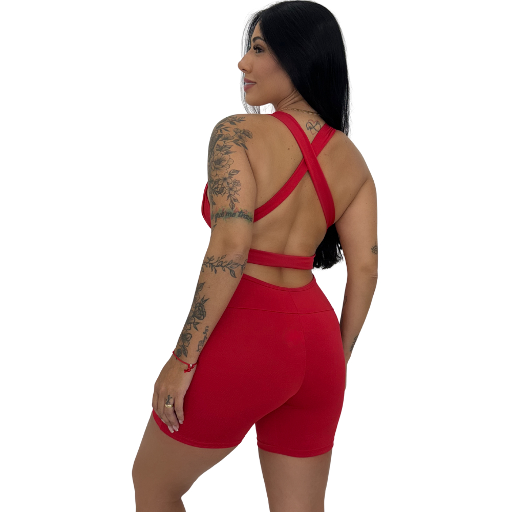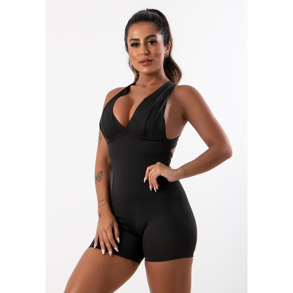 Macaquinho Fitness Com Bojo Cruzado Nas Costas Feminino Academia