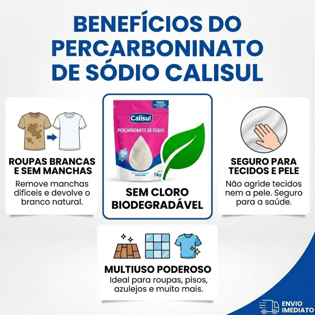Percarbonato 100% Puro Tira Manchas Roupas Brancas e Coloridas