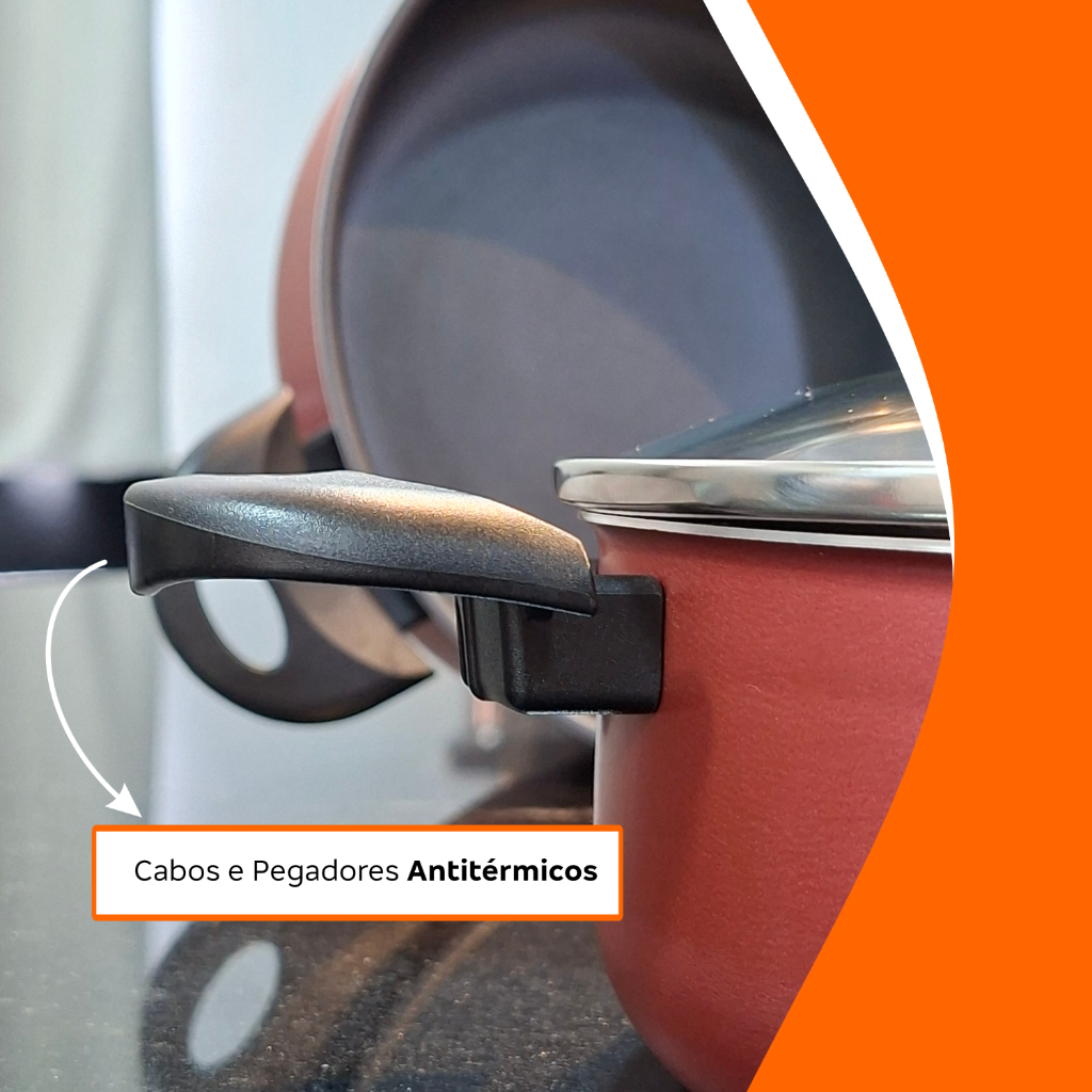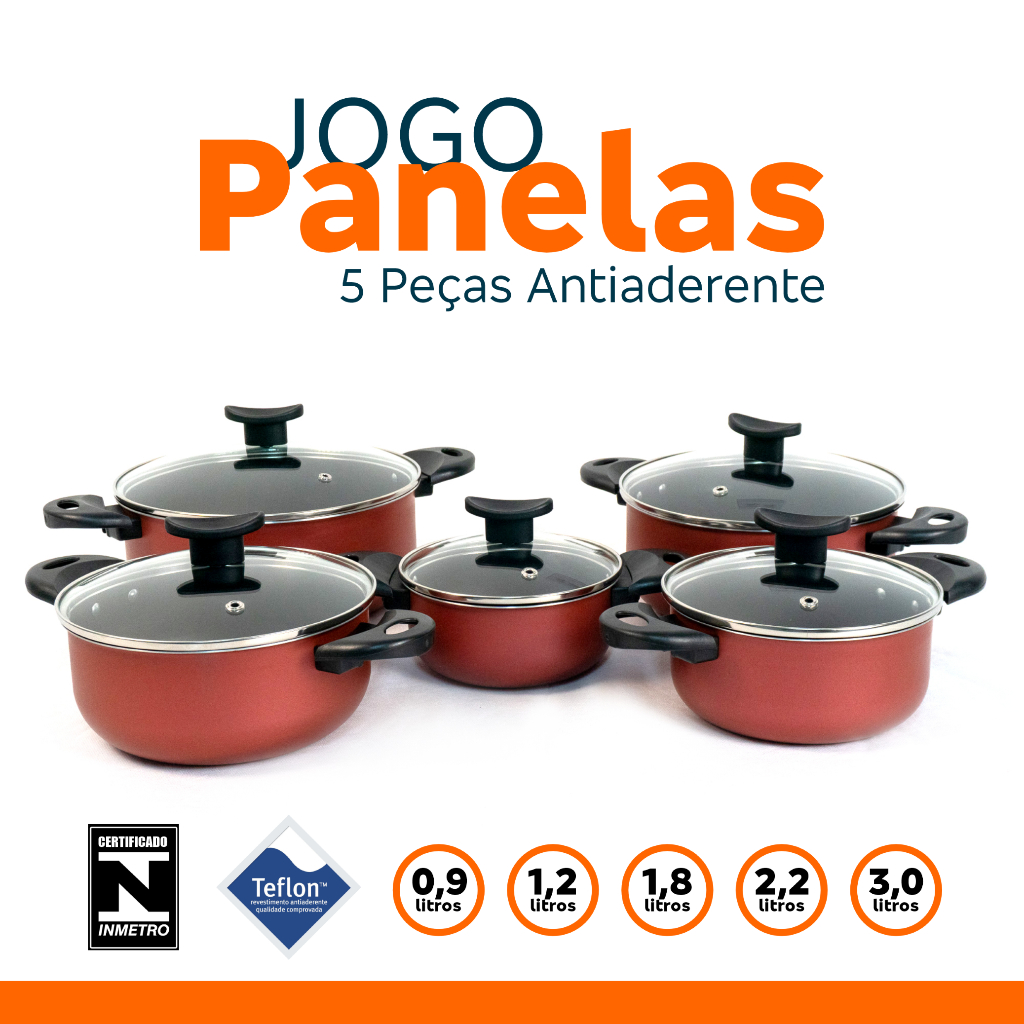 Jogo de Panelas Antiaderente 5 Peças com Tampa de Vidro Revestimento 5 Camadas Teflon