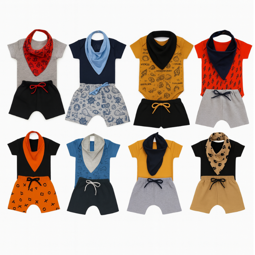 Kit 3 Conjuntos Bebe Verão Menino Short Body E Babador Bandana Recém Nascido