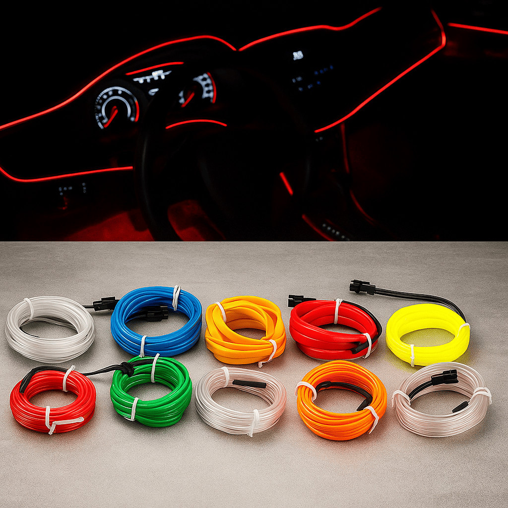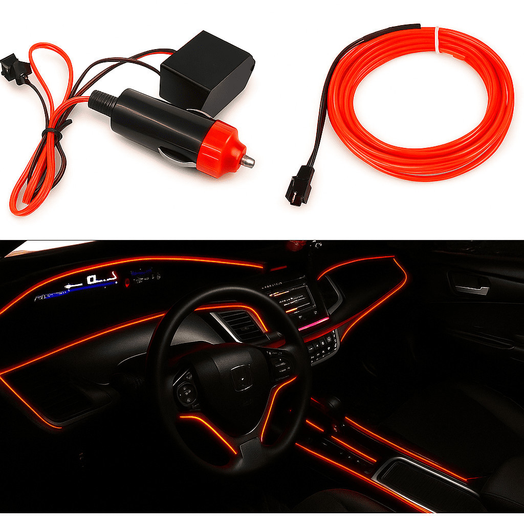 Fita Neon Carro Tunning Colorido LED Automotivo à Prova d’Água Conector 12V Mangueira Iluminação Som e Painel de Carro