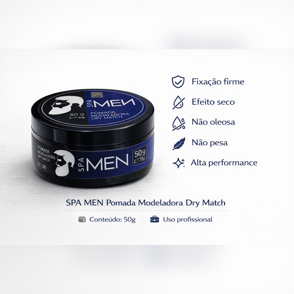 Pomada Modeladora Unissex Dry Match 50g – Fixação Forte, Efeito Seco, Acabamento Natura, Cachos e Brilho Garantido