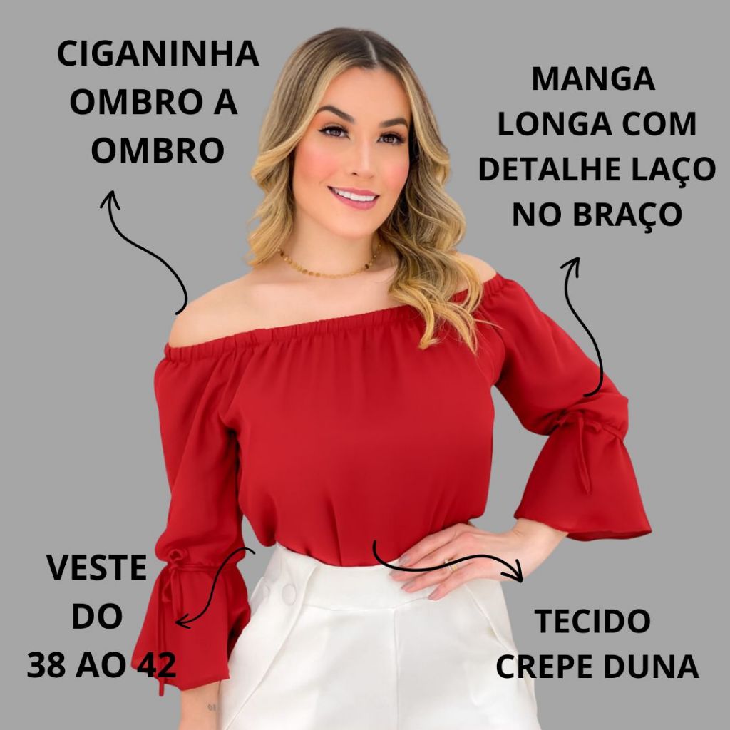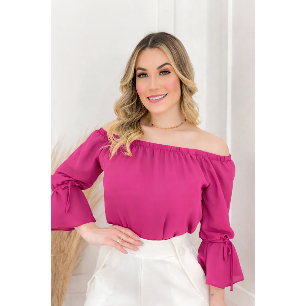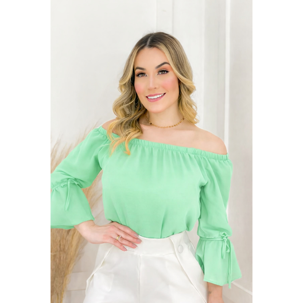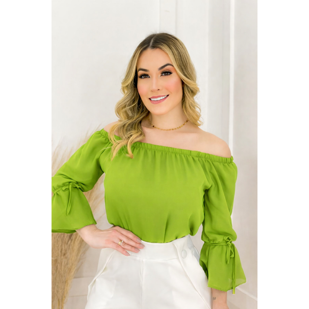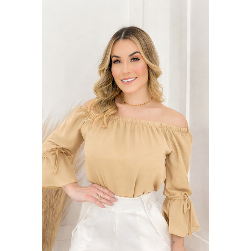 Blusa Feminina Ombro a Ombro Manga 3/4 com Amarração – Elegante e Moderna Verão 2025