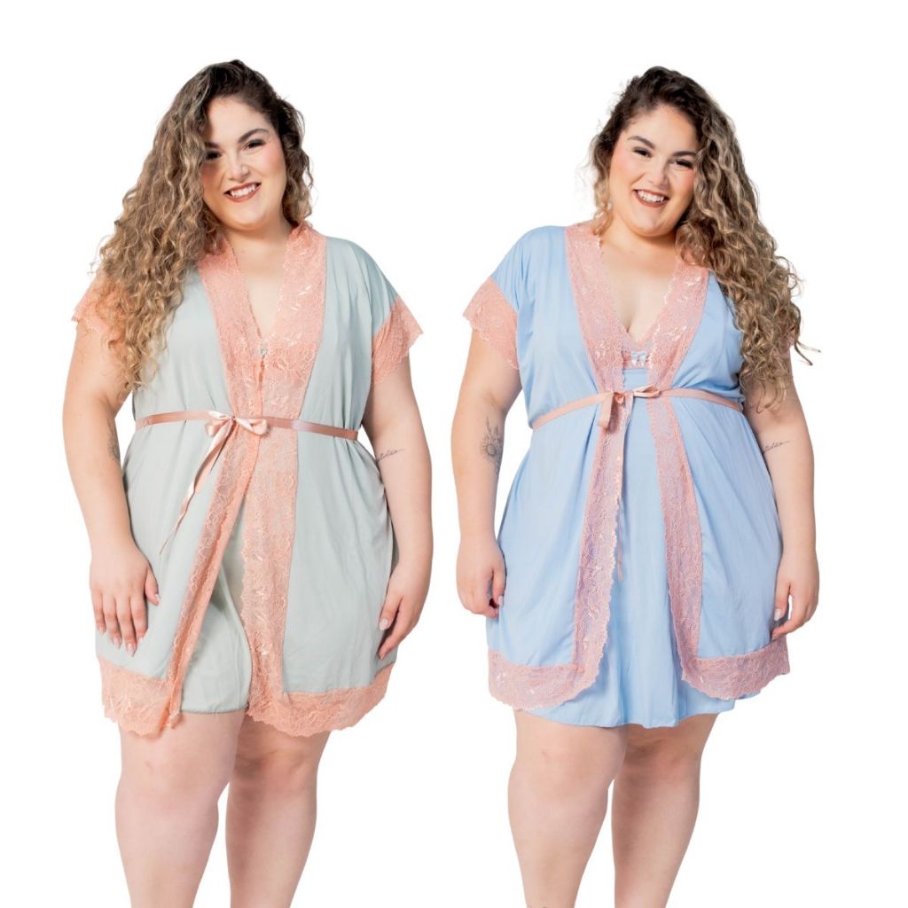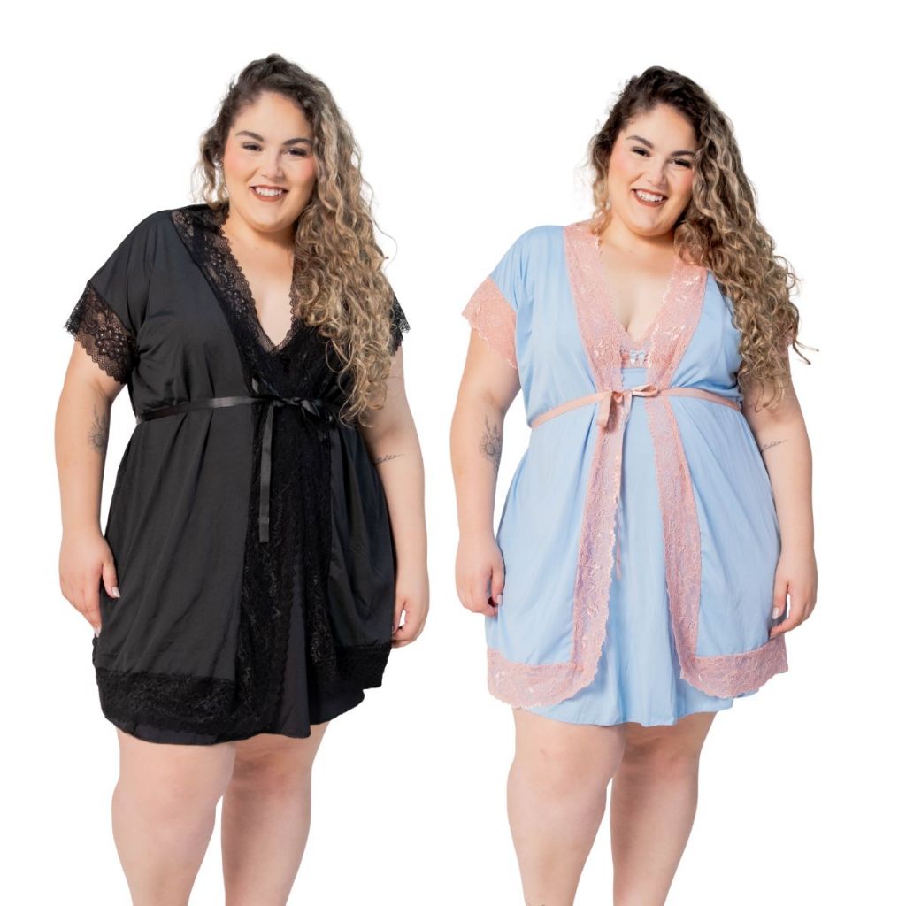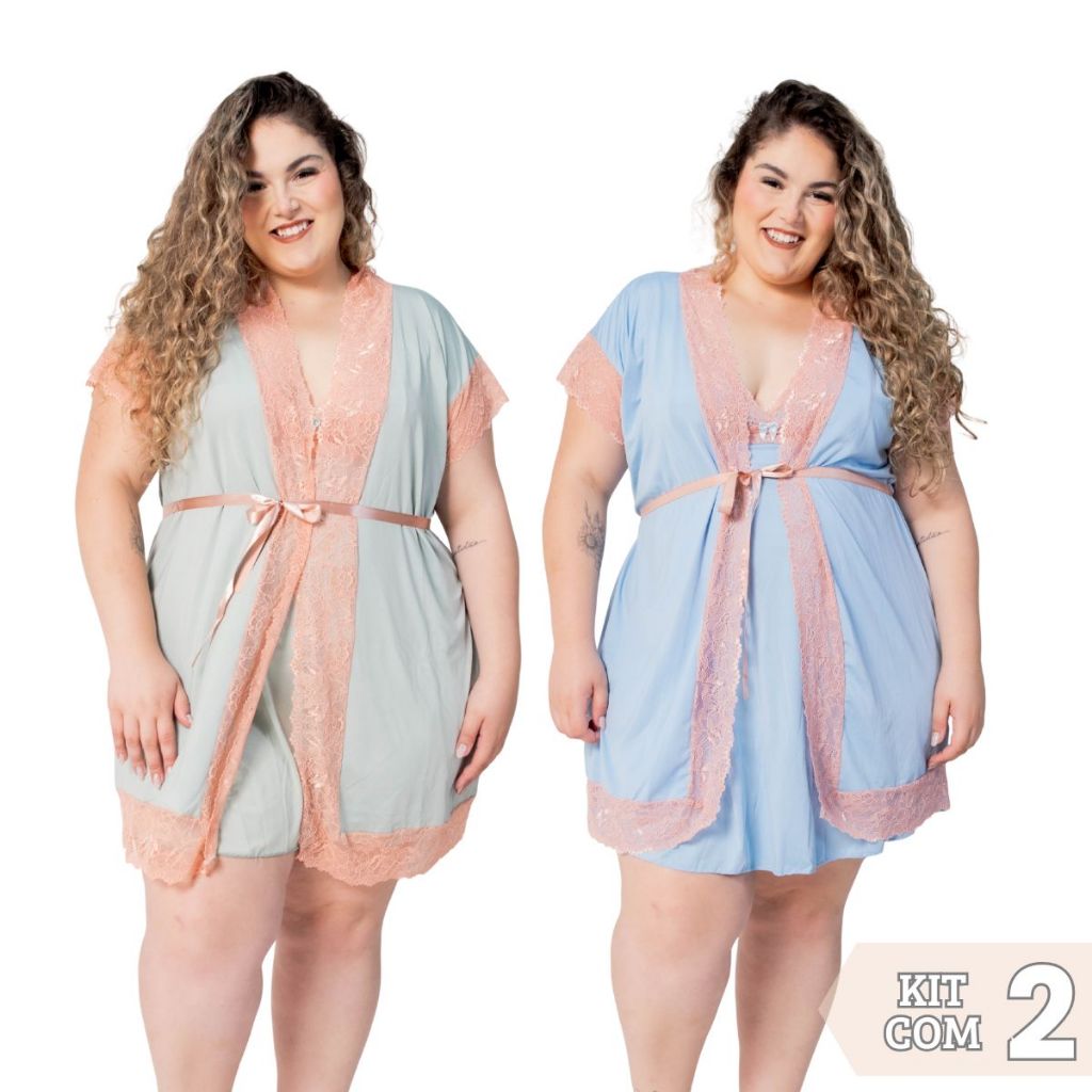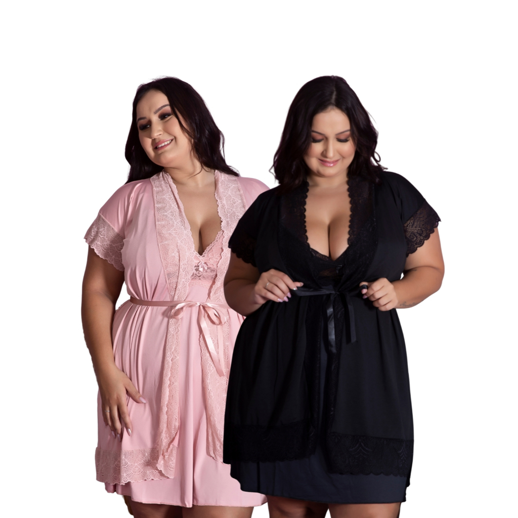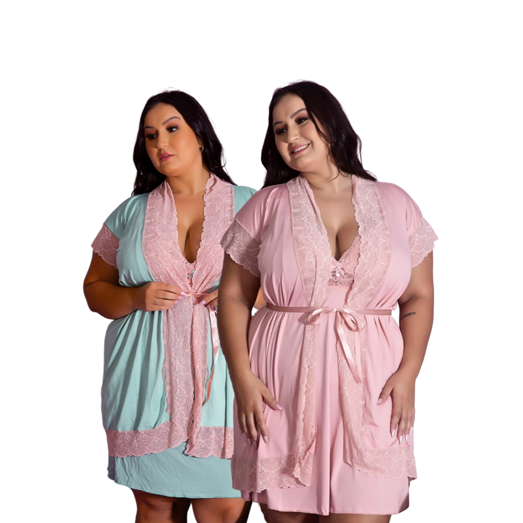 Kit Maternidade 2 Robes e 2 Camisolas Amamentação Pós Parto Plus Size Confortável Com Renda