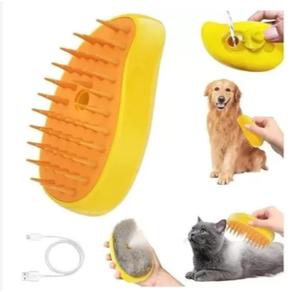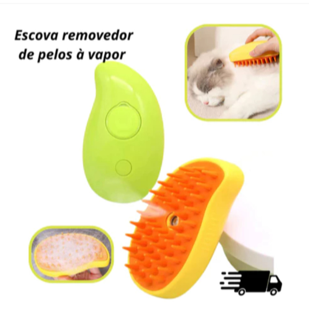 Escova Vapor 3 em 1 Elétrica p/ Cães e Gatos - Remove Pelo, Massagem, Pente p/ Pelos