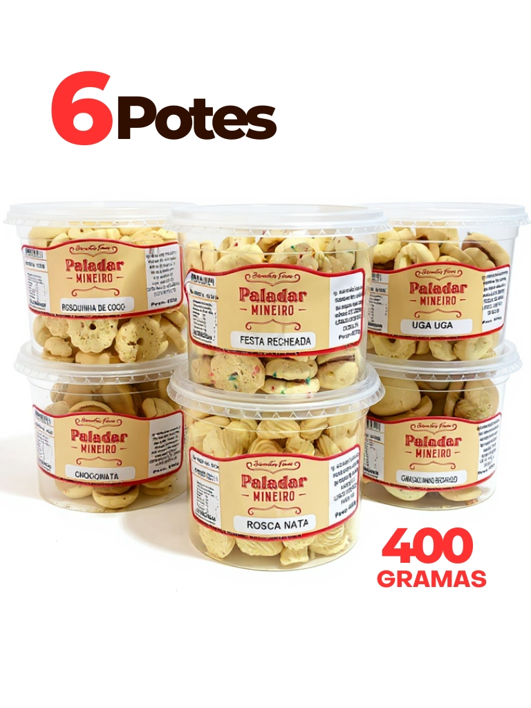Kit 6 Potes Biscoitos Finos Amanteigados Recheados Paladar Mineiro Atacado Revenda