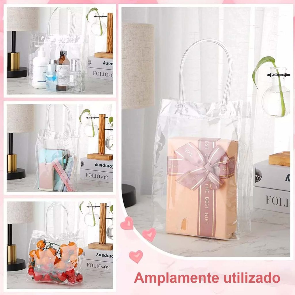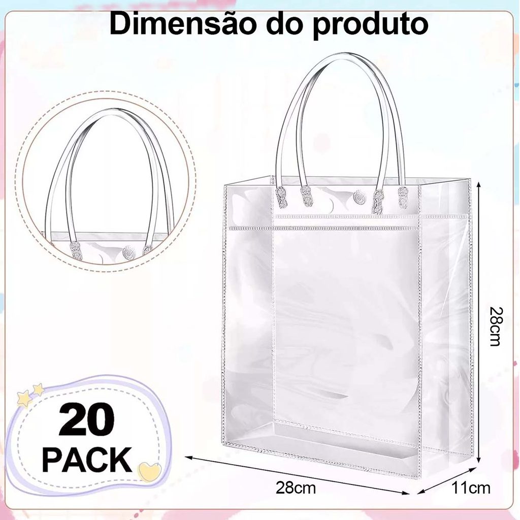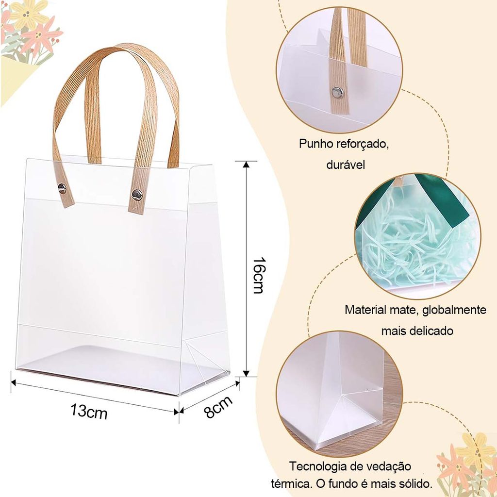 15/20 peças de sacos de presente transparente com alças sacos de presente de plástico PVC para casamento, reutilizável