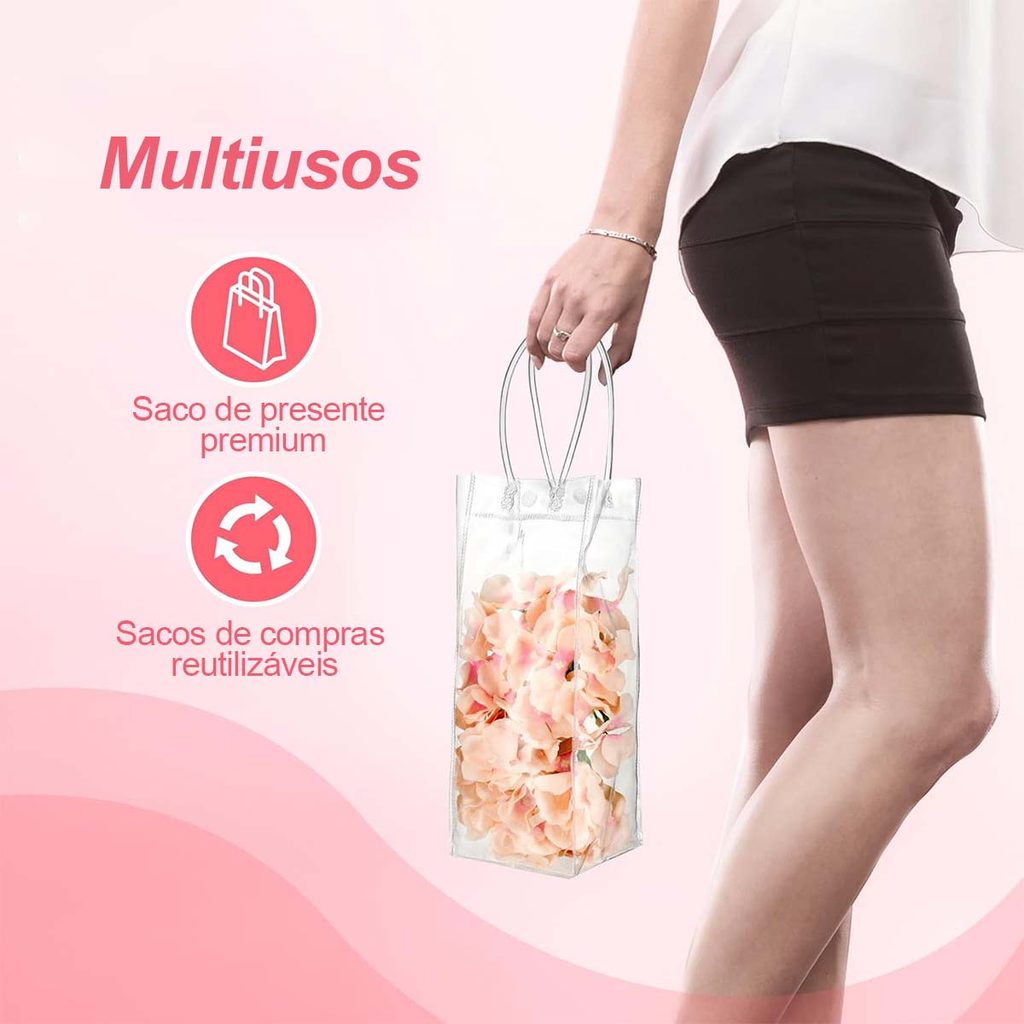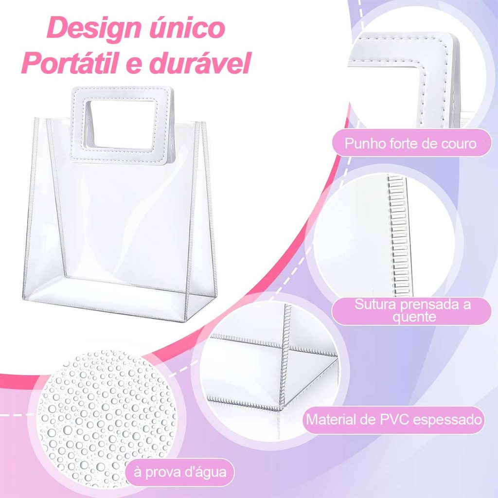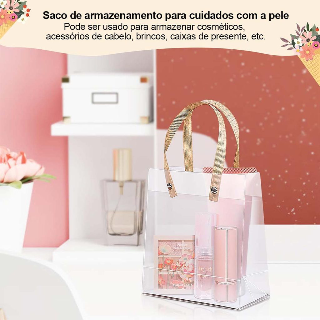 15/20 peças de sacos de presente transparente com alças sacos de presente de plástico PVC para casamento, reutilizável