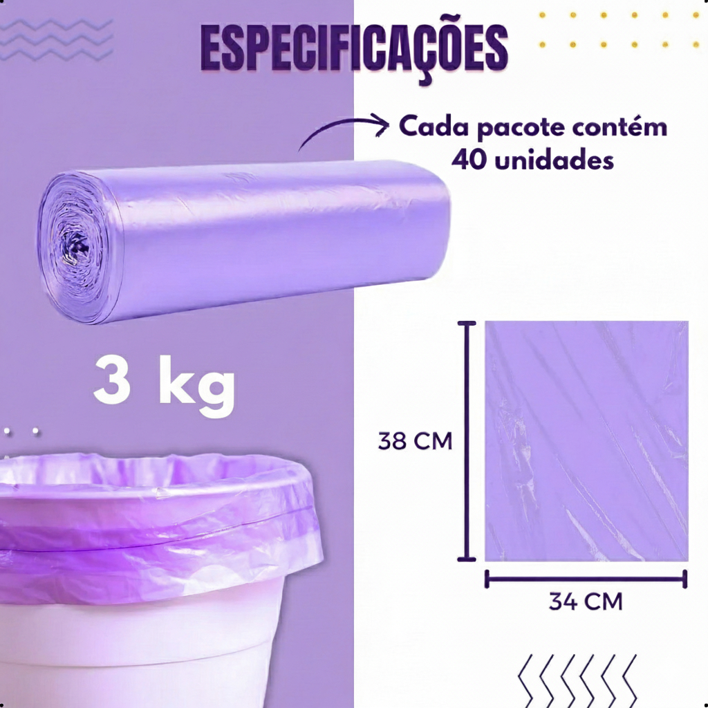 Sacos de Lixo Perfumados Lavanda |Kits com 40, 80, 120 e 160 Sacos| Pia e Banheiro Neutraliza Odores