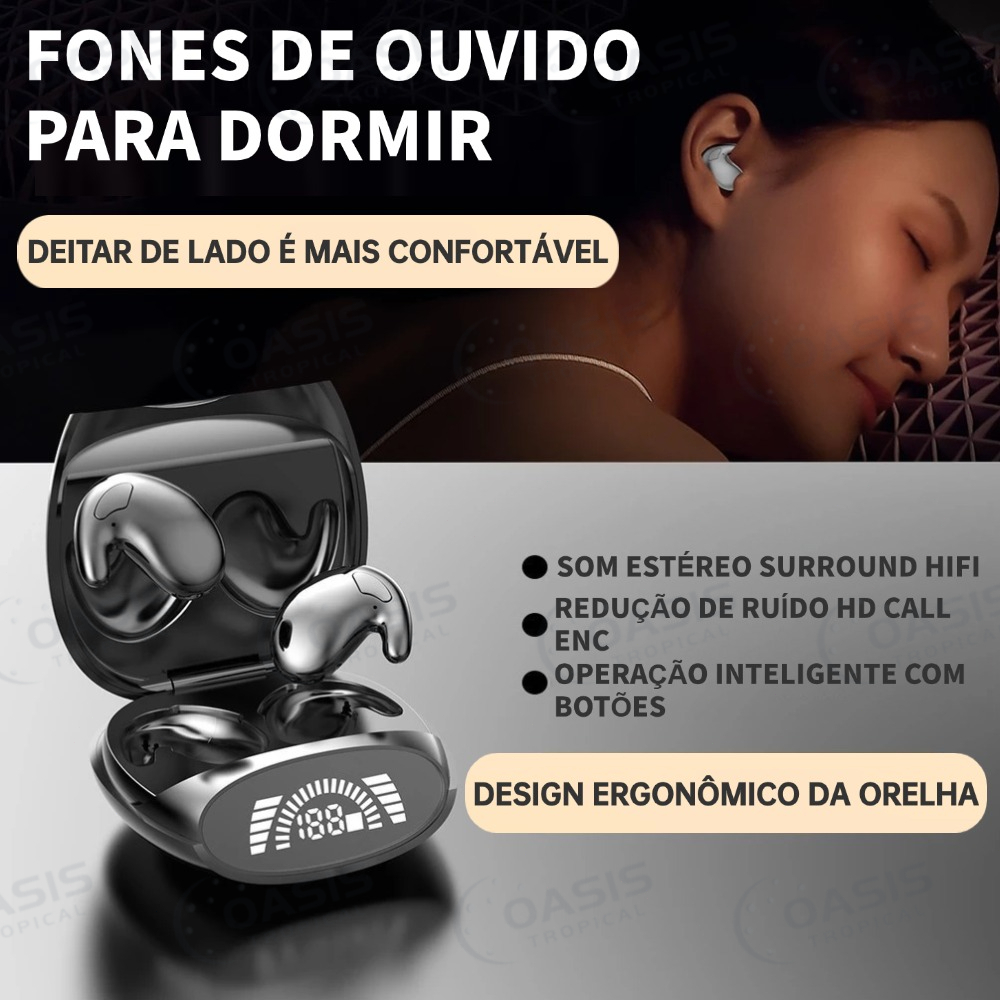 Fone de Ouvido TWS Invisível para Dormir Bluetooth Oculto IPX7 À Prova d'Água com Cancelamento de Ruídos