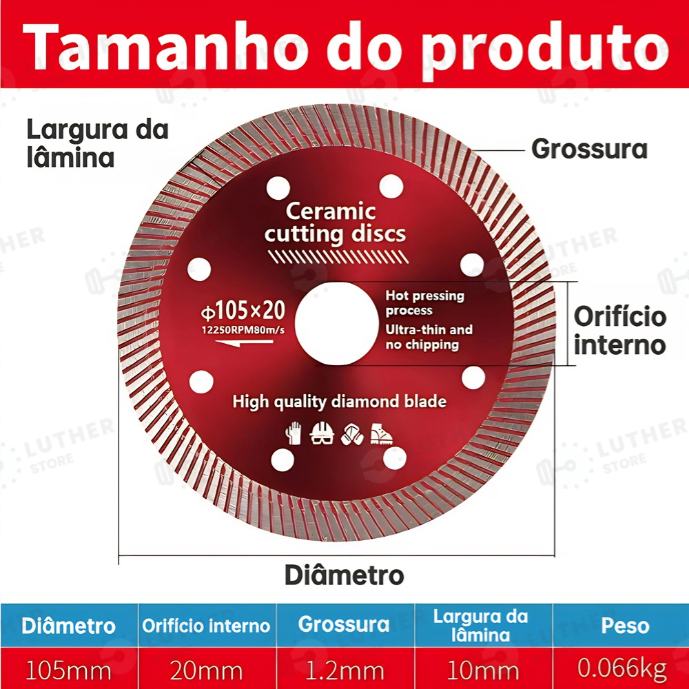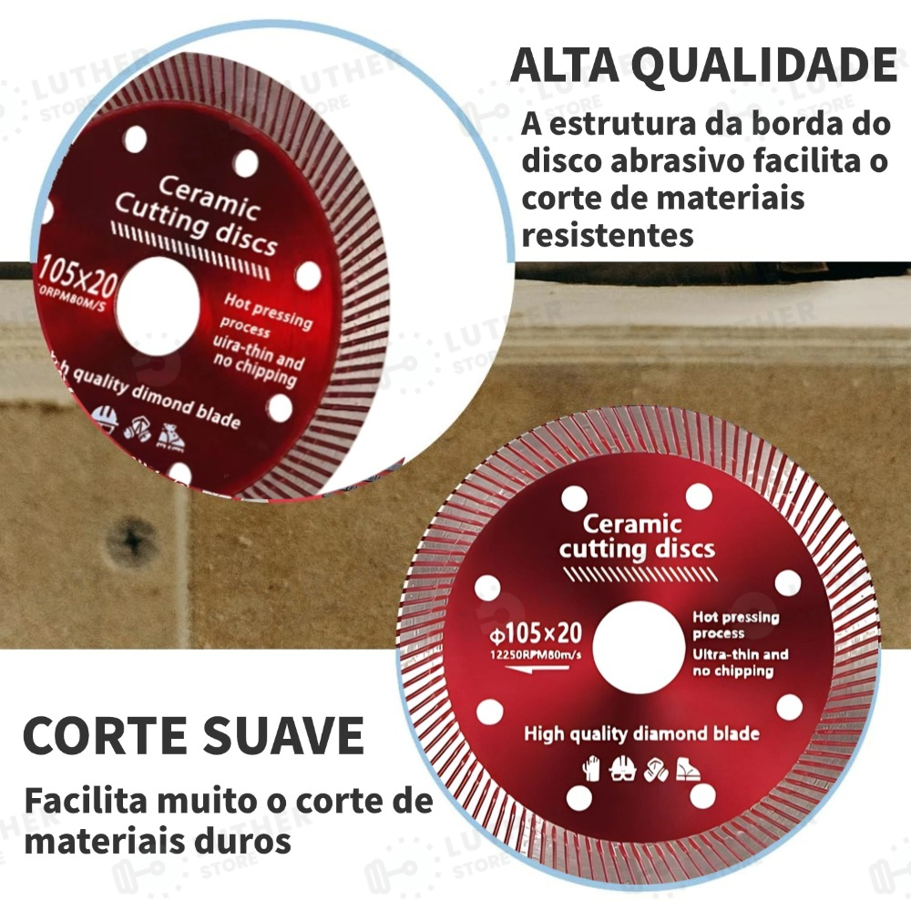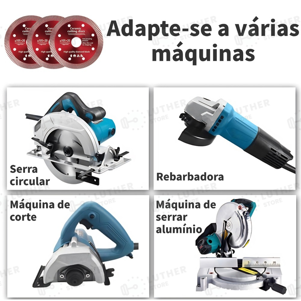 Kit2/3/5 Disco de Corte Diamantado Porcelanato 105 mm x 20 mm - 1,4mm A melhor qualidade Super Fino Diamantado