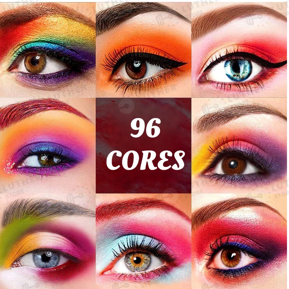 Paleta De Sombra De Olho Em 96 Cores Perolada / Fosca / Com Glitter / Longa Duração Pincéis de maquiagem