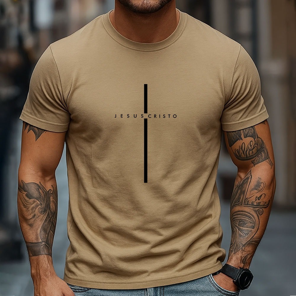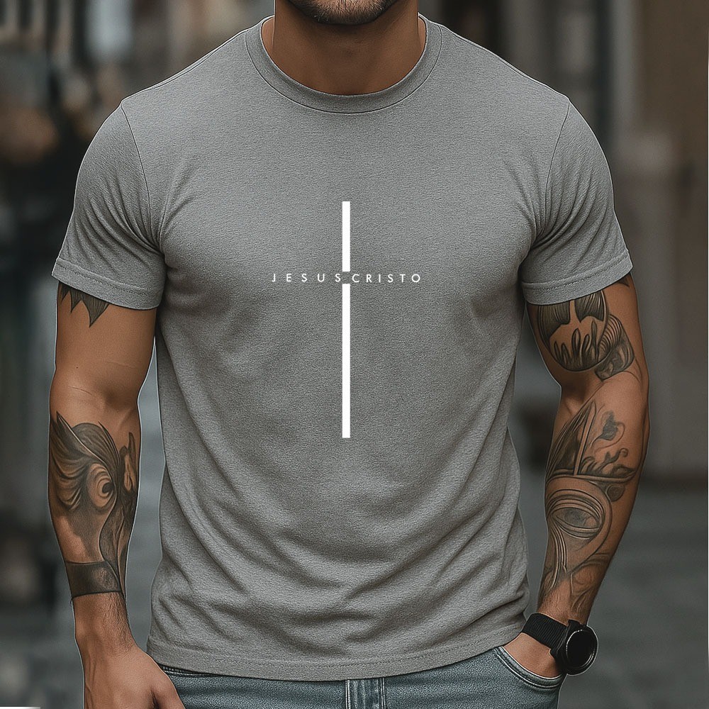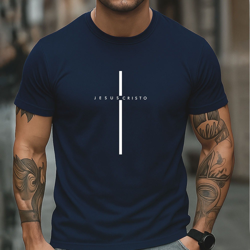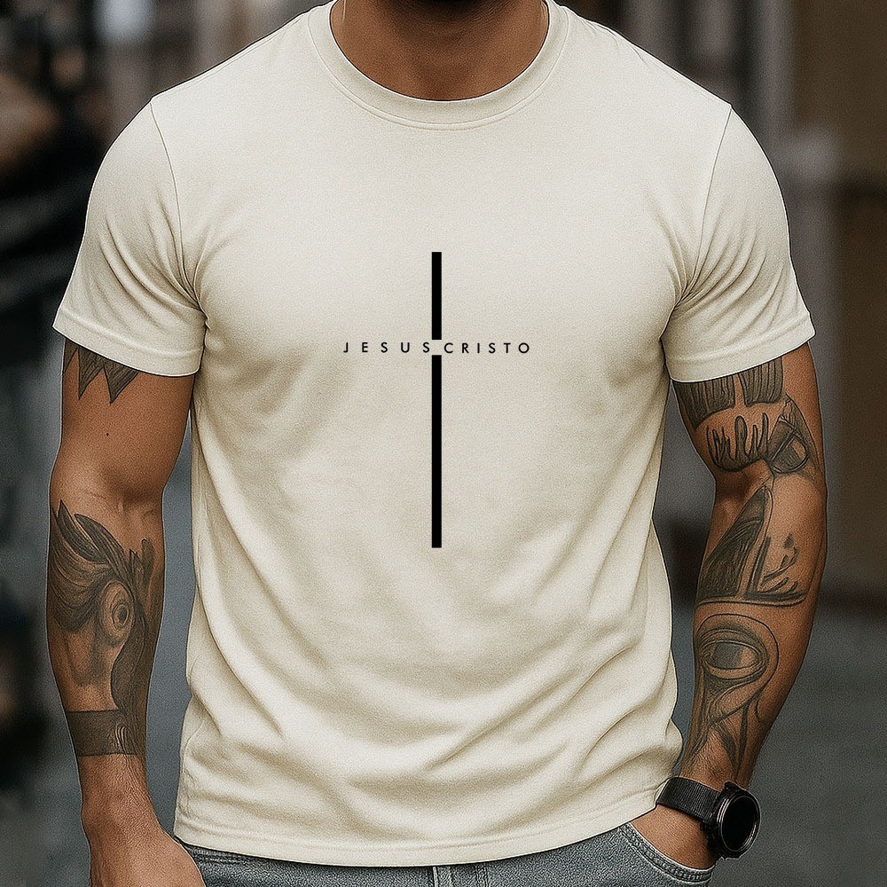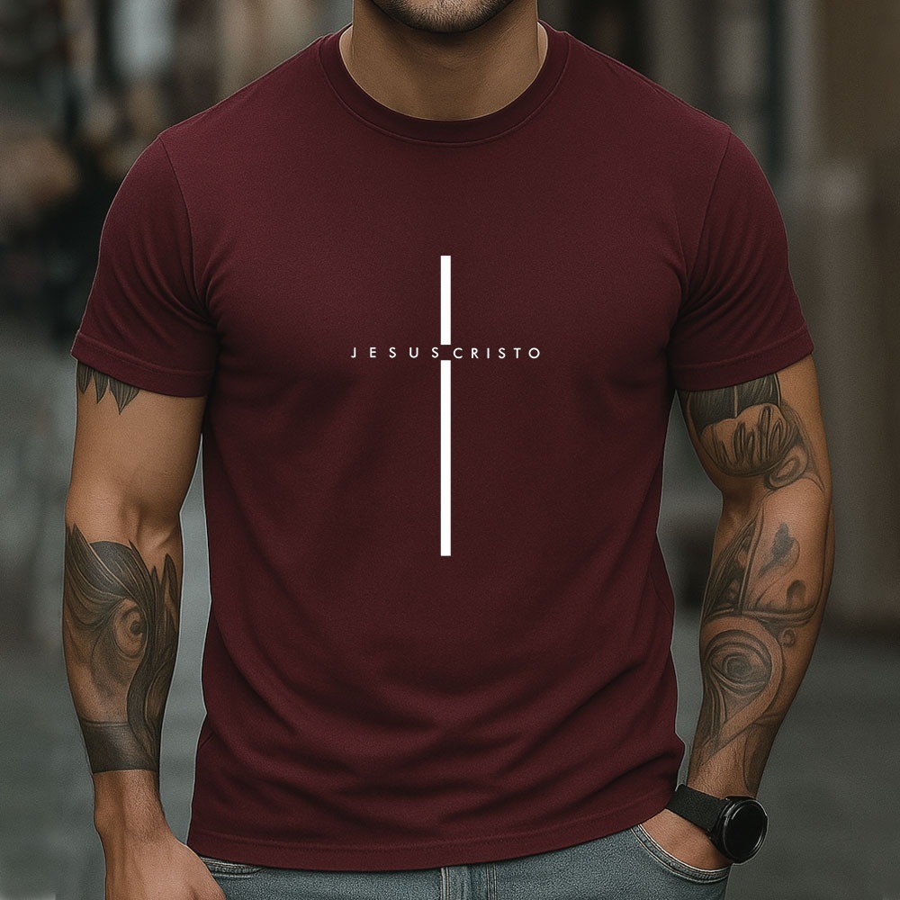 Camiseta Masculina 100% Algodão Jesus Cristo Camisa Minimalista Cristã Com Cruz Estilo Casual