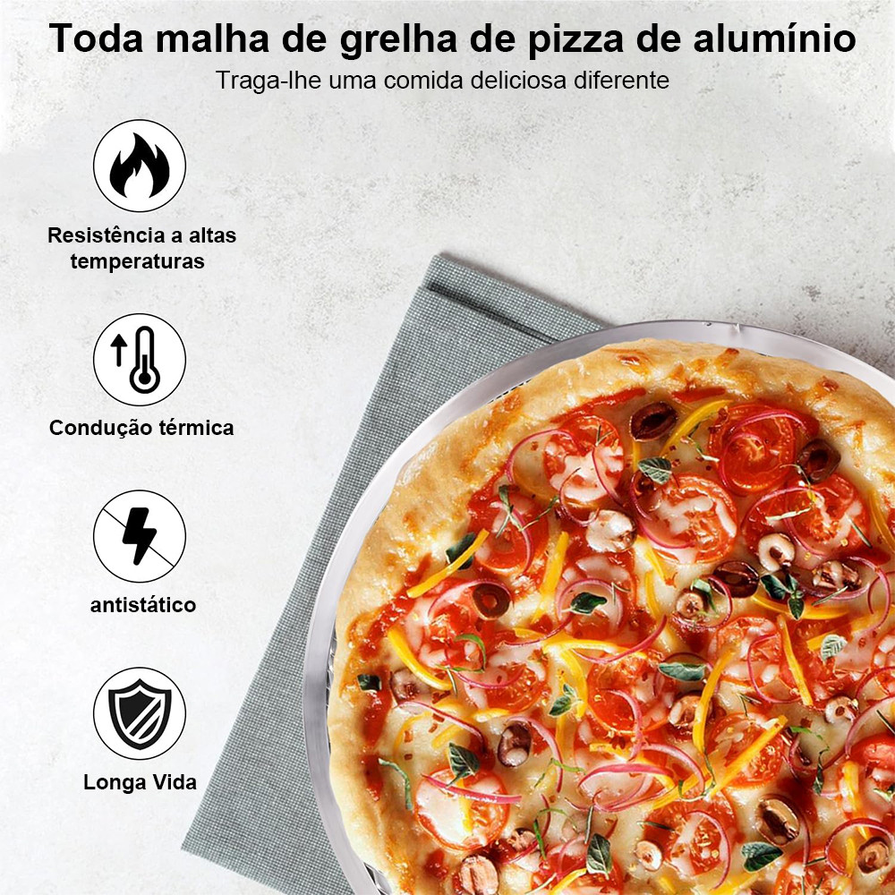 Bandeja de pizza com 5 peças, tela de alumínio de 35,5 cm, bandeja antiaderente para forno de pizza, bandeja de malha