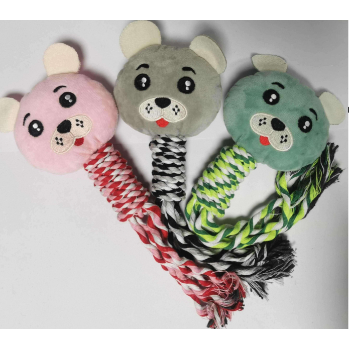 Brinquedo Para Pet Cão | Poliéster | Pelúcia com Corda | Rosa/Verde/Cinza