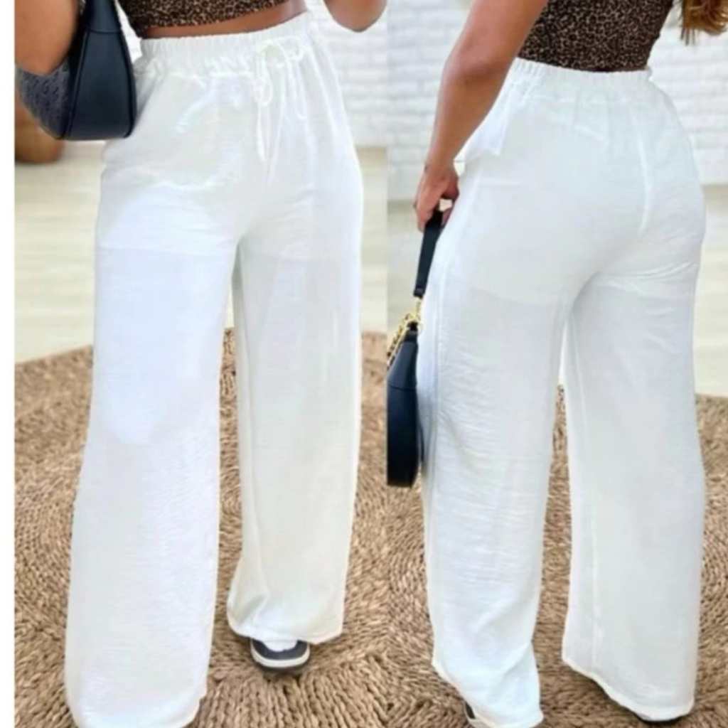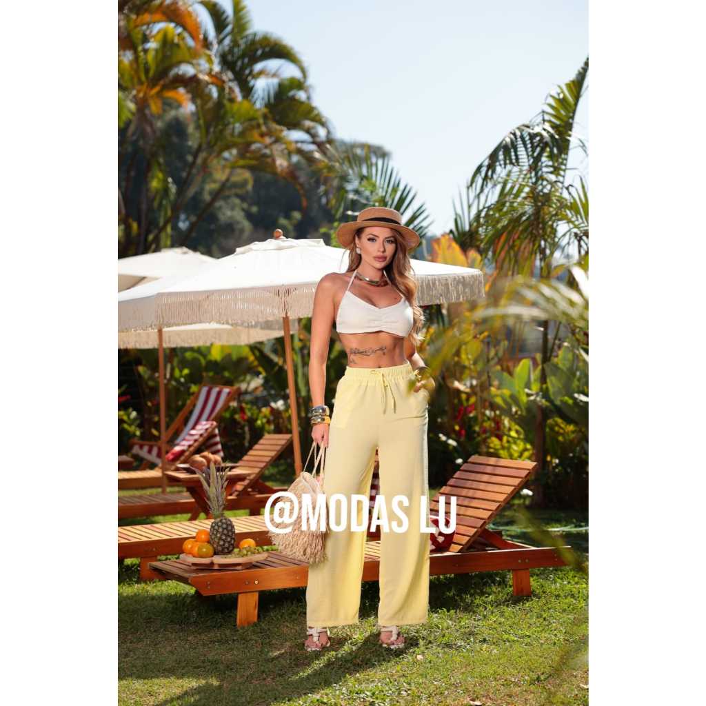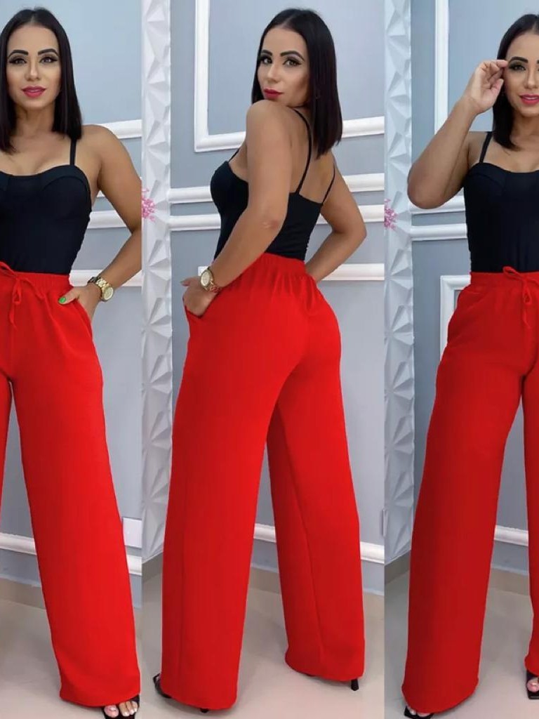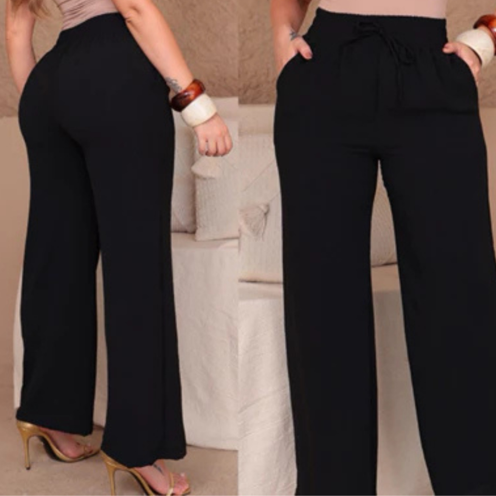 Calça Pantalona Feminina Cintura Alta Com Bolso Duna Tendencia Promoção