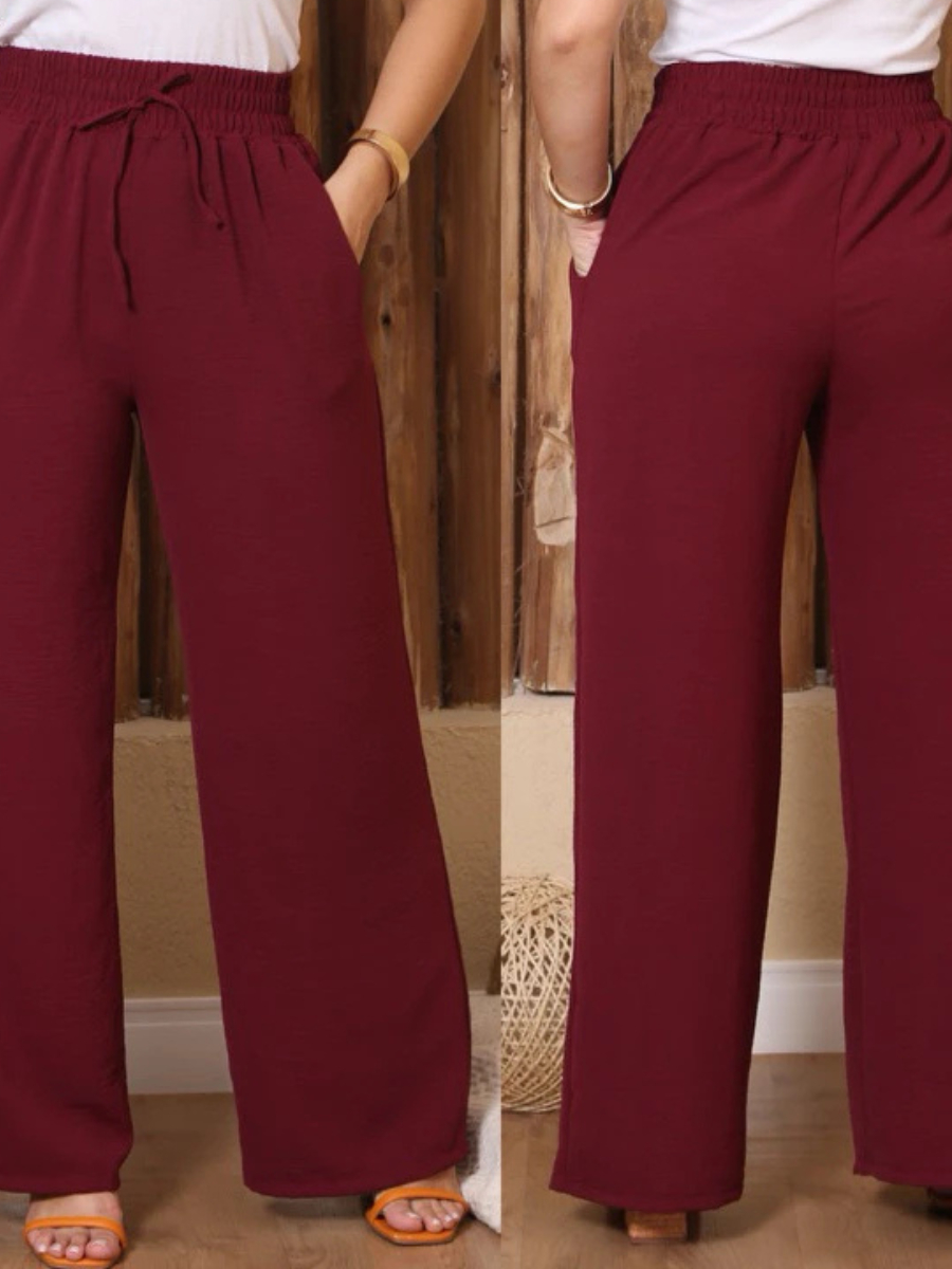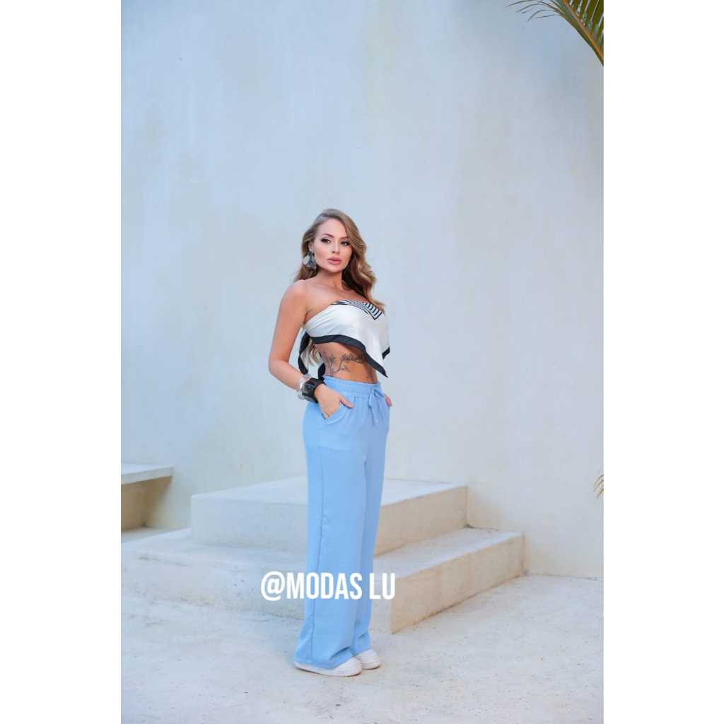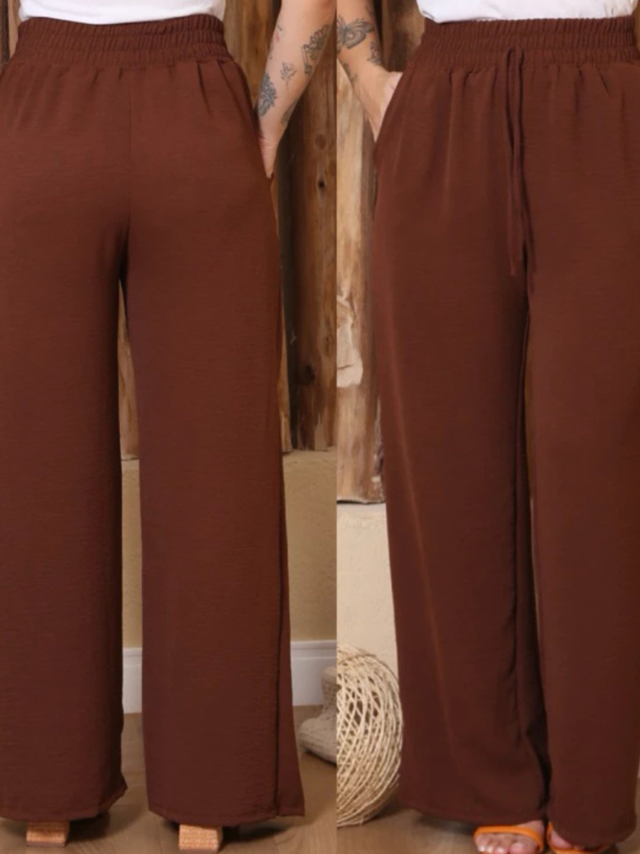 Calça Pantalona Feminina Cintura Alta Com Bolso Duna Tendencia Promoção