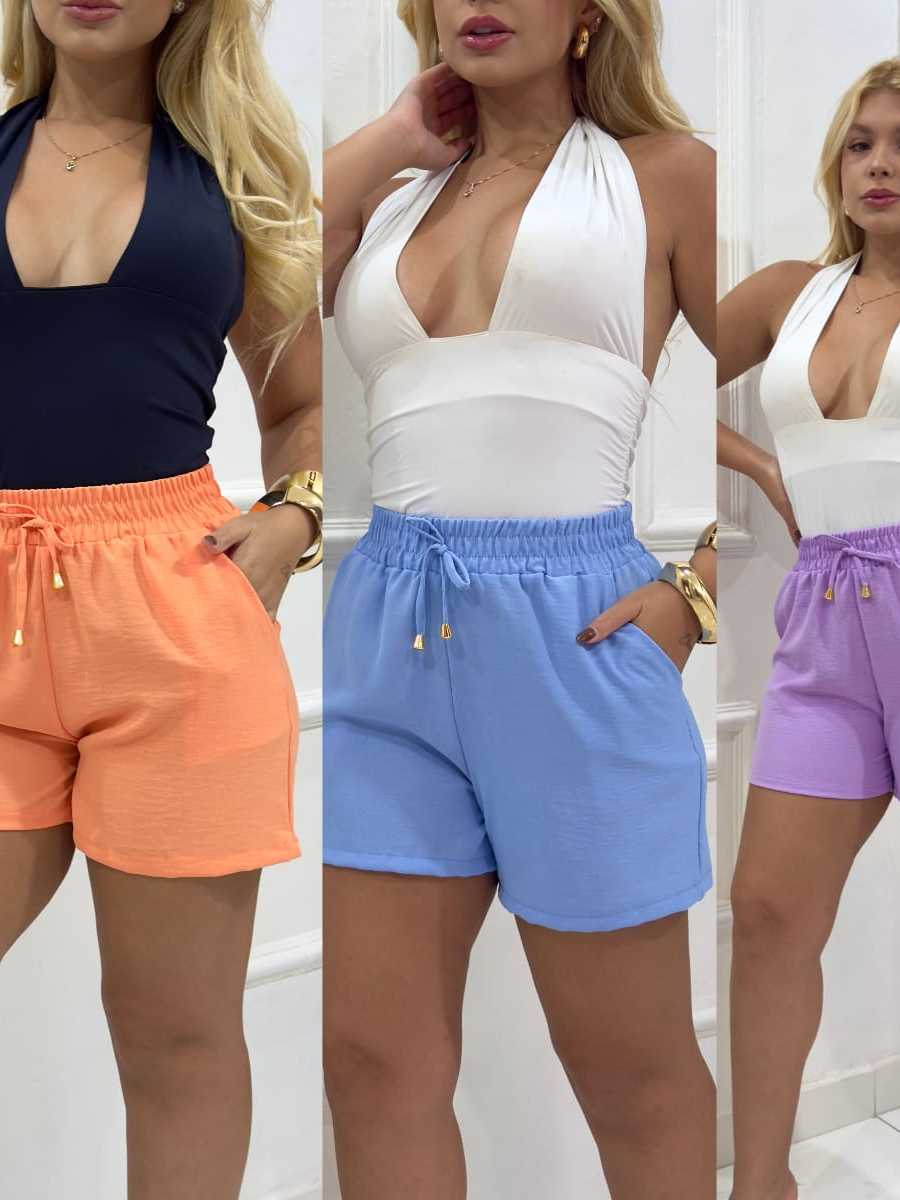 Shorts Feminina Tecido Duna Com Bolso Moda Verao Leve para Saida Praia Tendencia