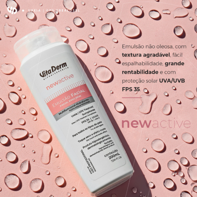 Hidratante Facial Vita derm FPS 35 New Active 200ml • Oil Free • Vegano • Proteção UVA/UVB